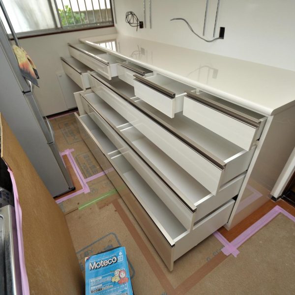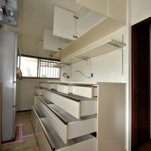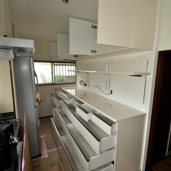 キッチン内の壁面収納部分をやらせていただきました。