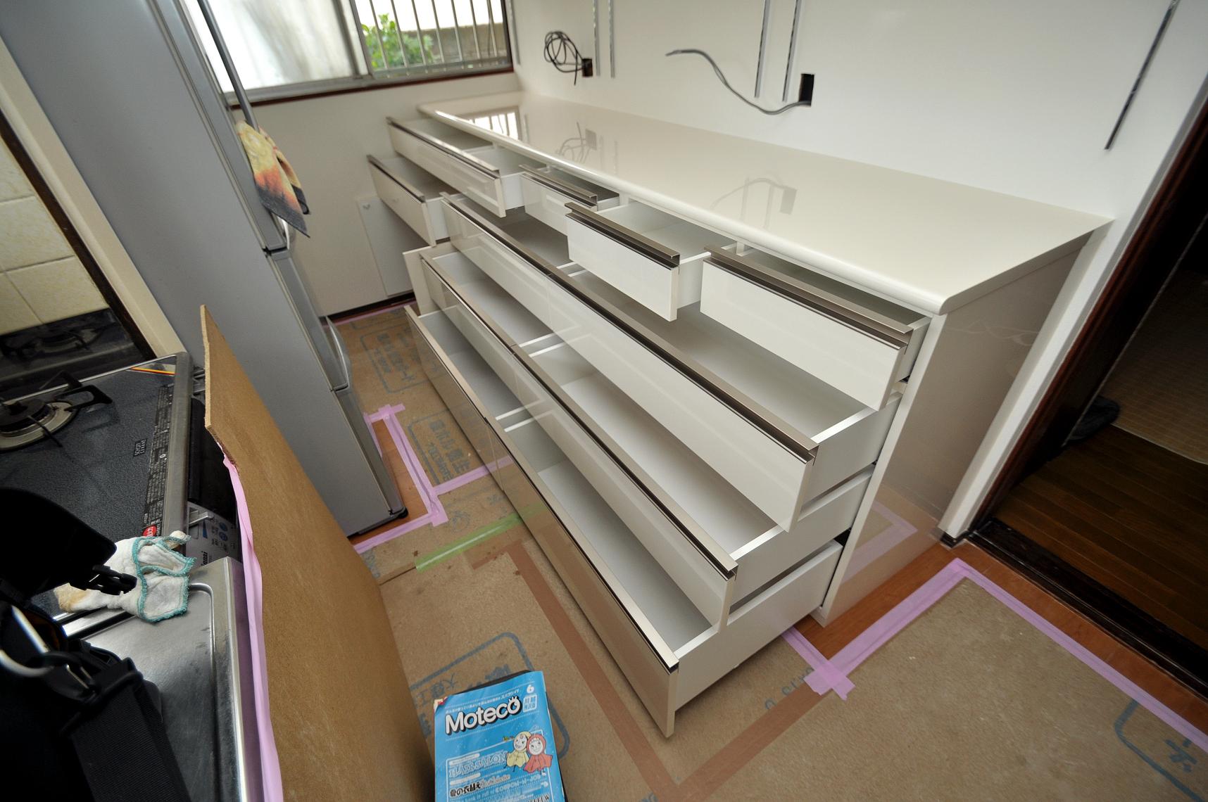 キッチン内の壁面収納部分をやらせていただきました。