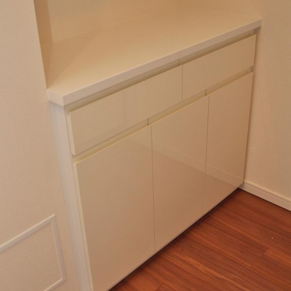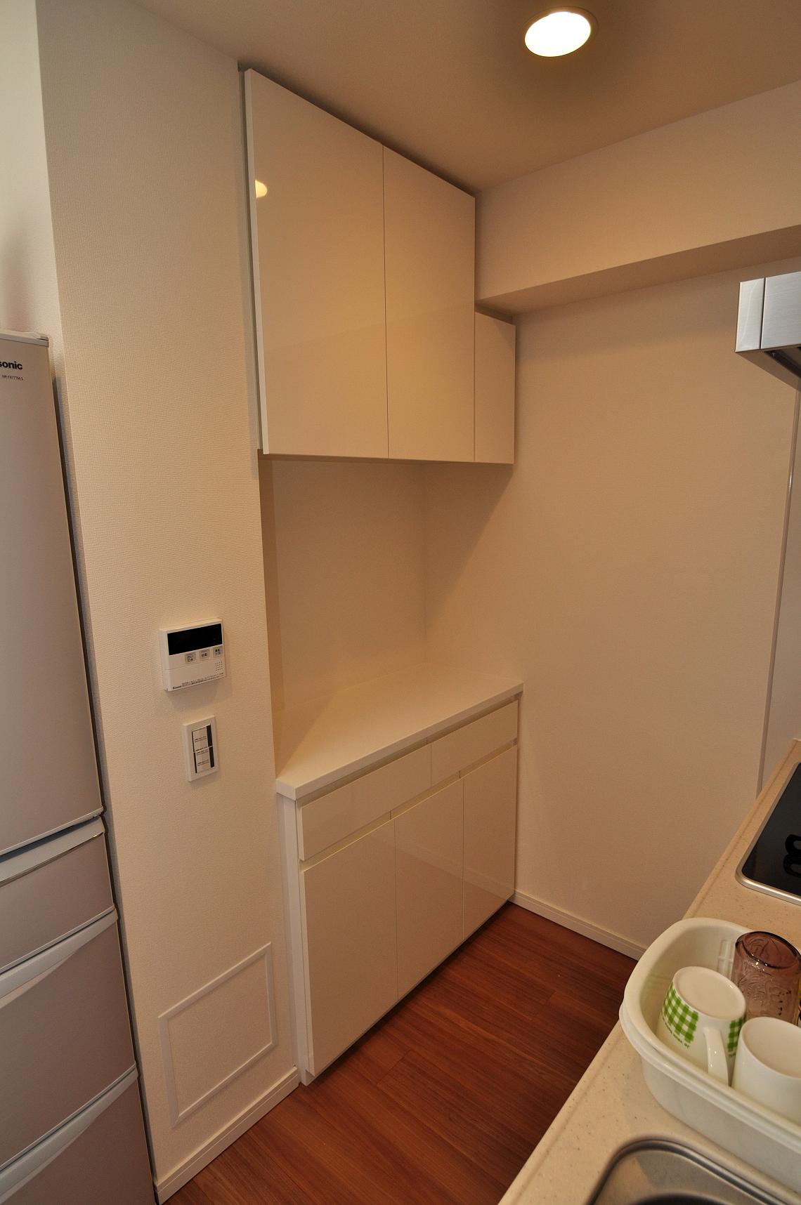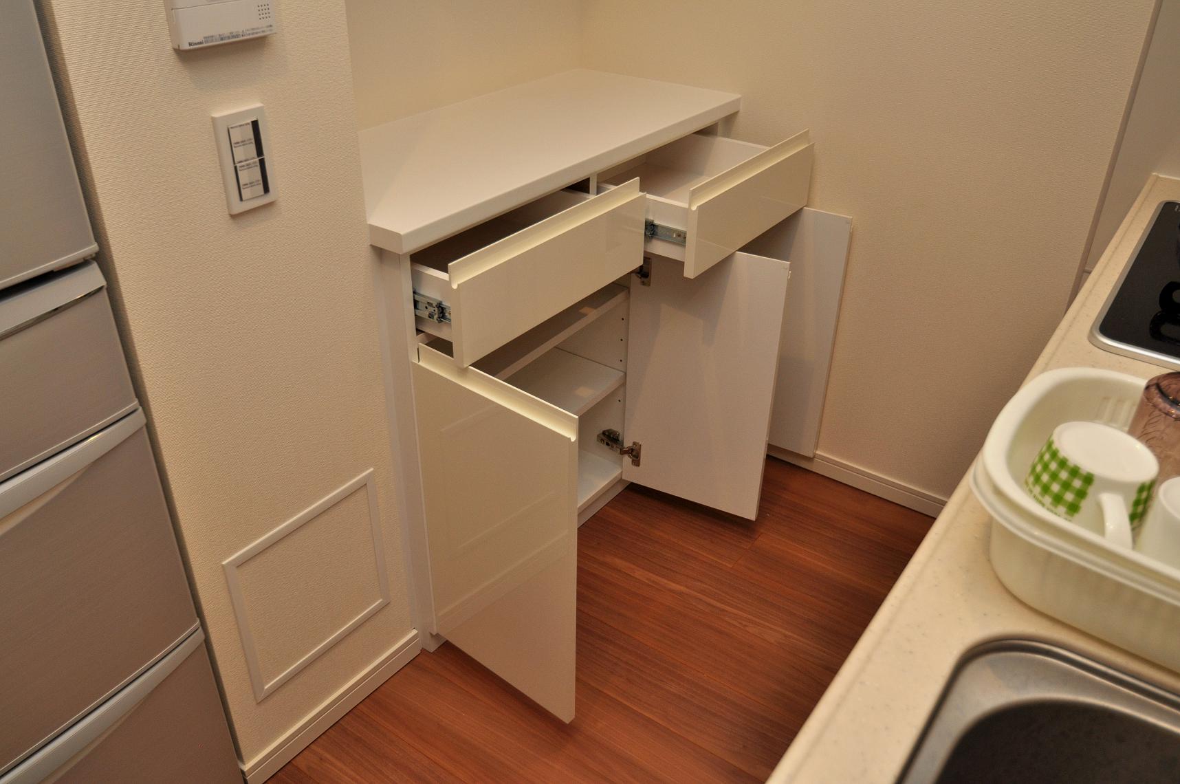 実装されていた吊棚下スペースに造作施工させていただきました。