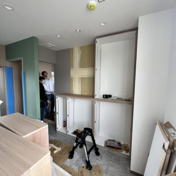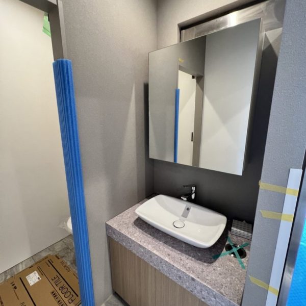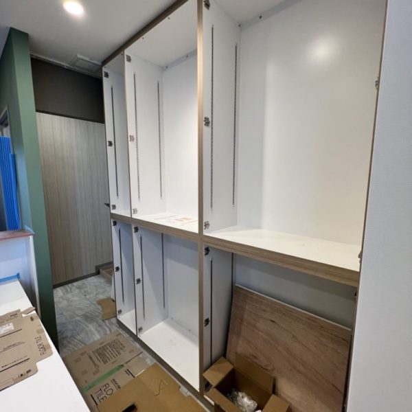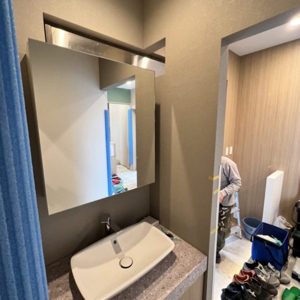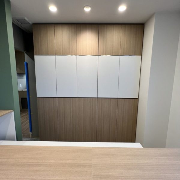 棲み分けの什器工事となり、一部造作洗面台なども携わらせていただきました。