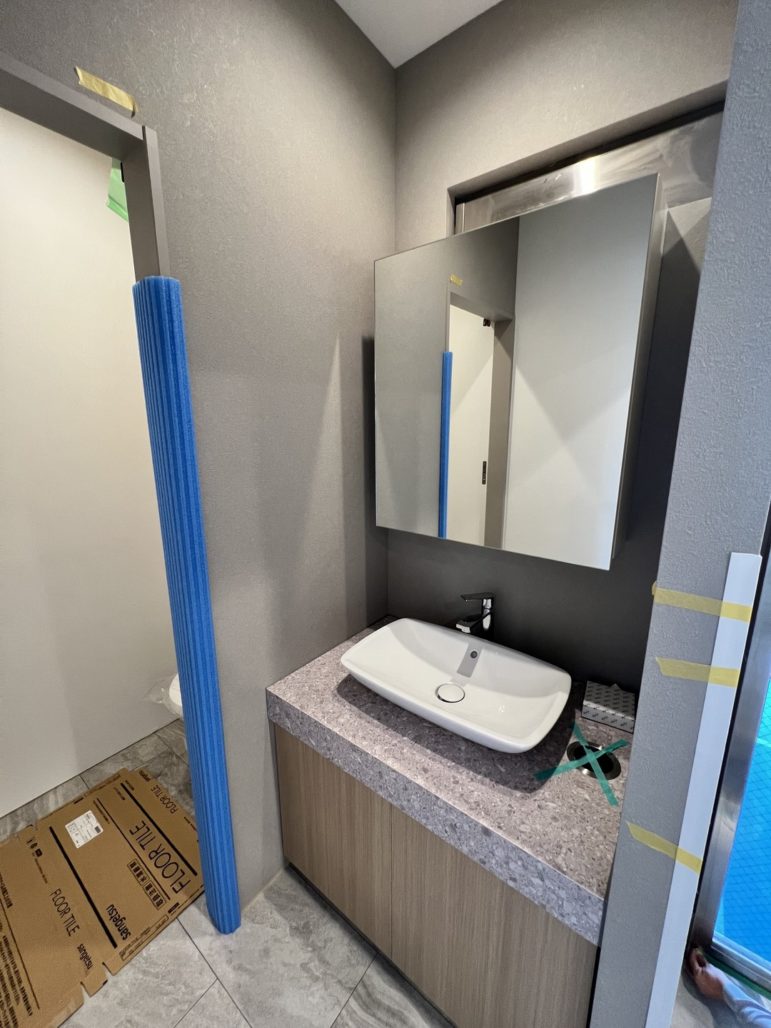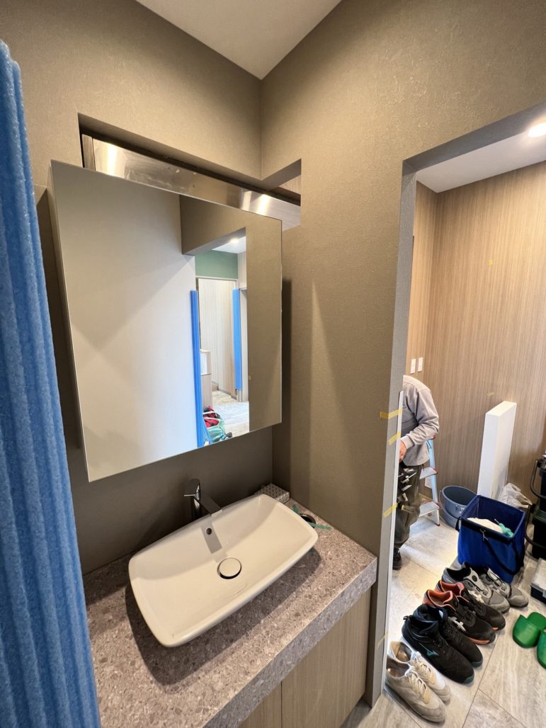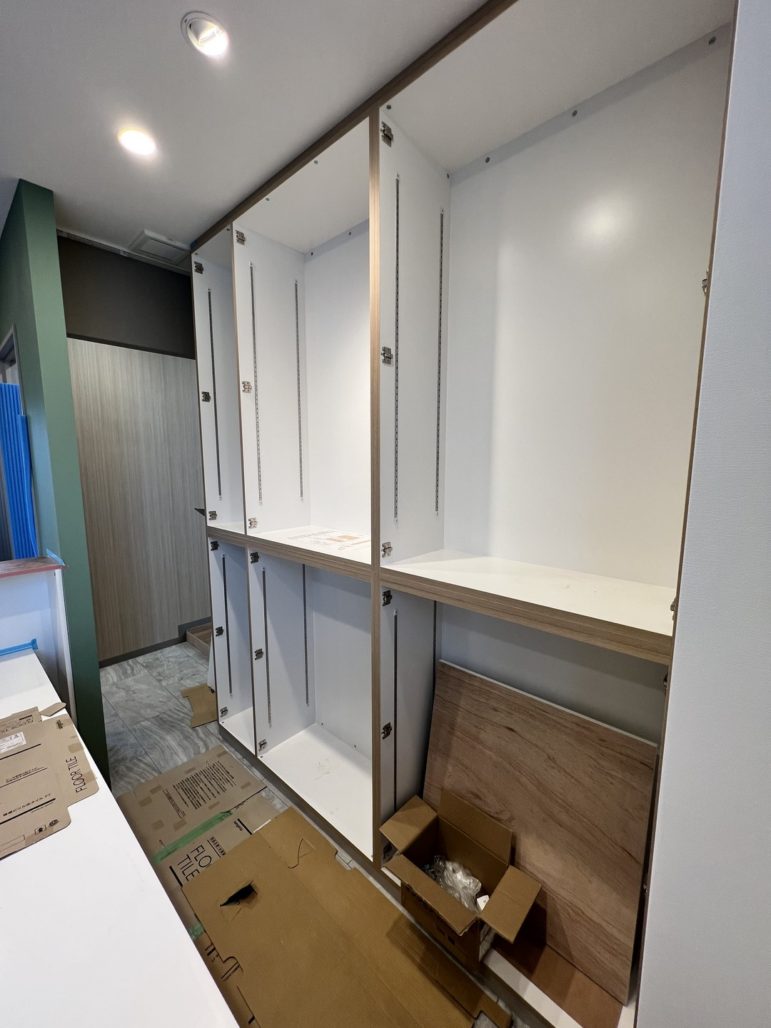 棲み分けの什器工事となり、一部造作洗面台なども携わらせていただきました。