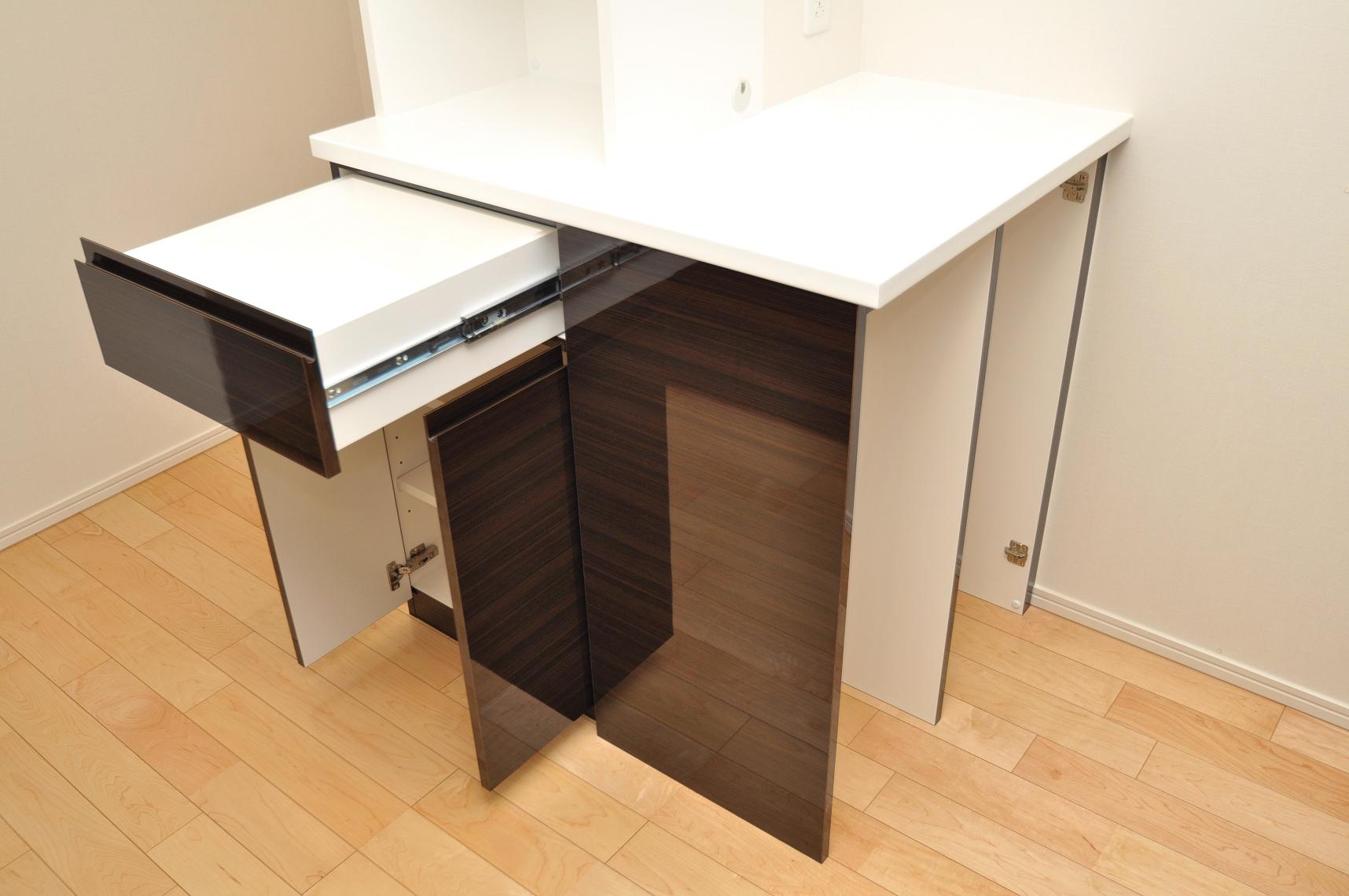 キッチンカウンターには引き出しが7杯・開き戸3枚の割り付けとなり、