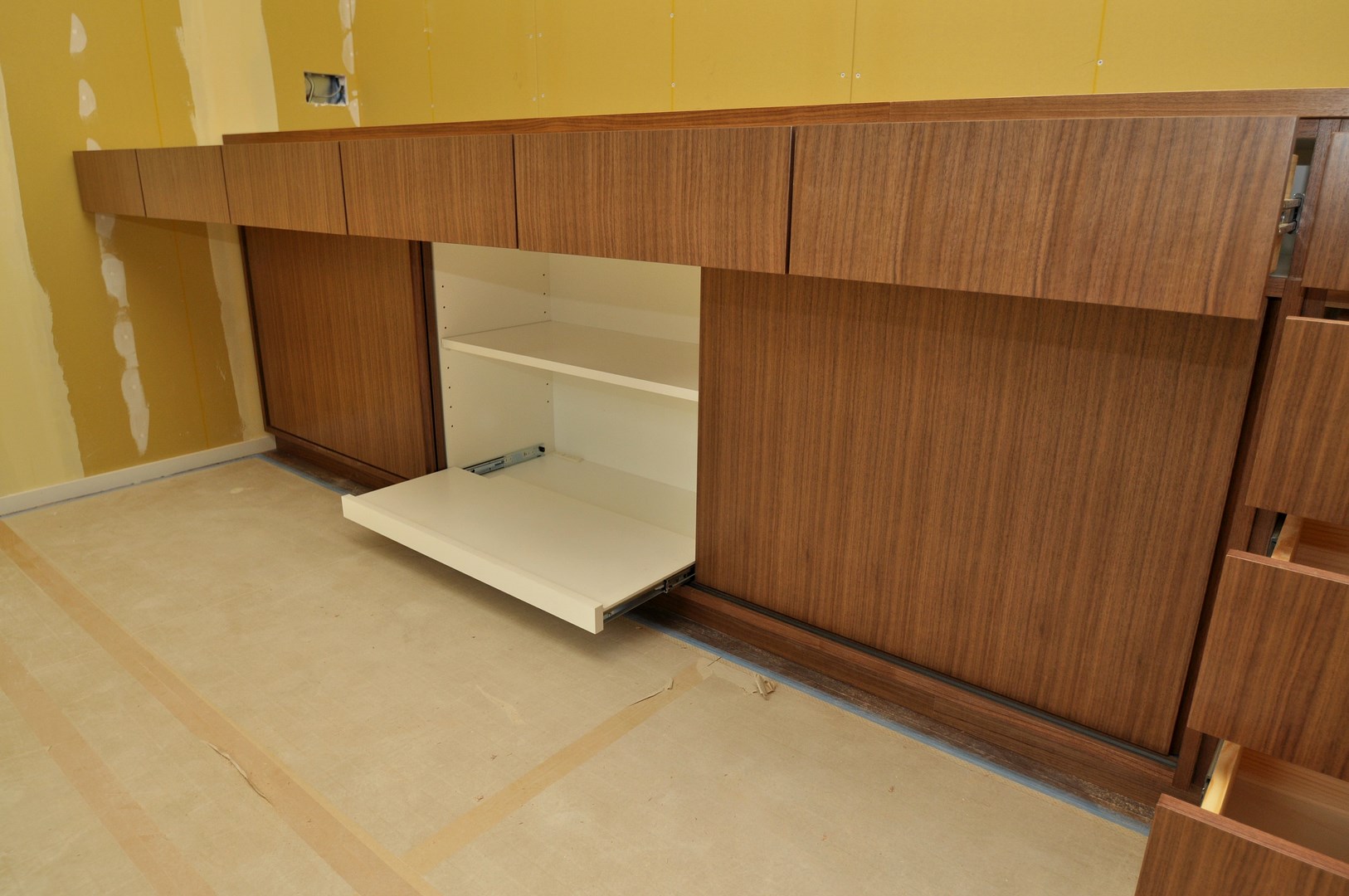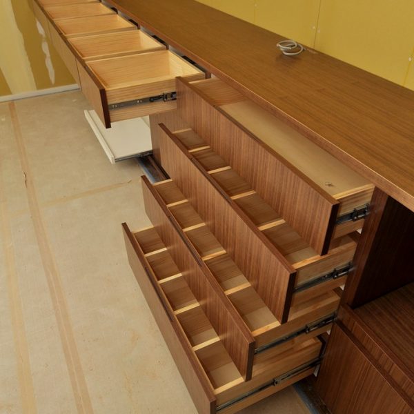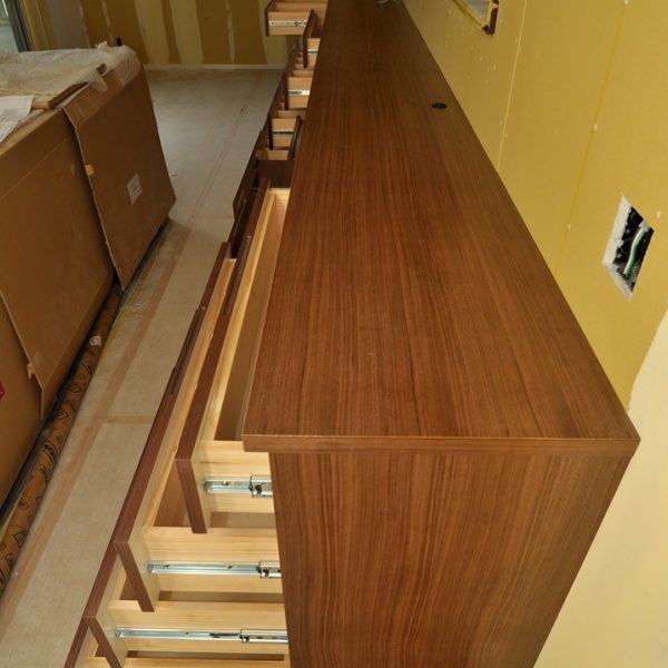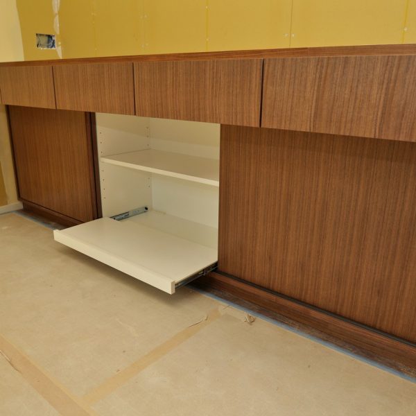 今回のダイニングボード(キッチン収納)の特徴は、贅沢なウォールナット材といえるでしょう。