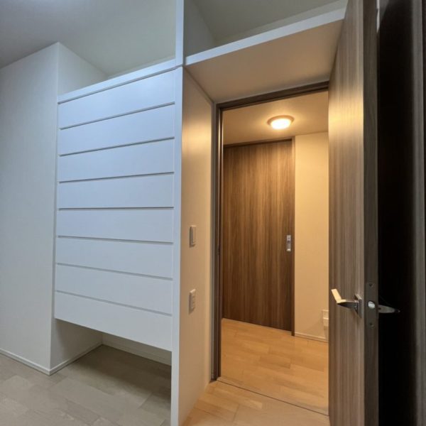 右袖のエンドパネルには居室の照明スイッチを移設させていただきました。