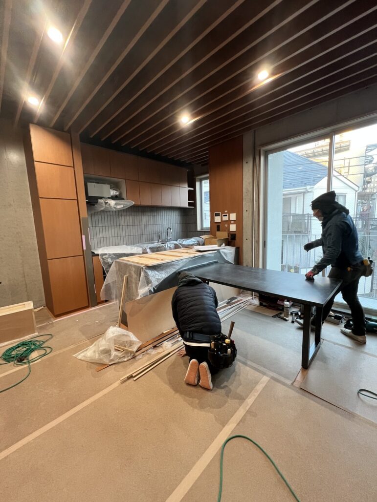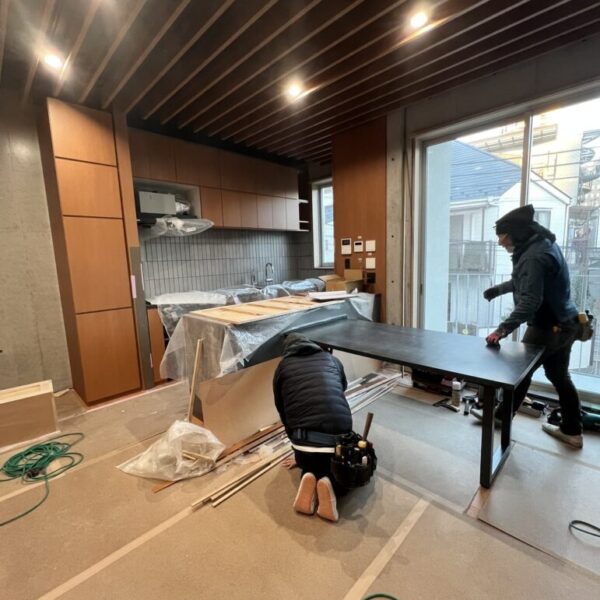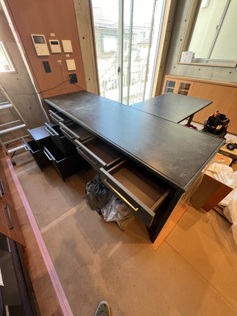 今回は2FLDKへ施工をさせて頂いたアイランドカウンター及び付随する造作テーブルのレポートです。