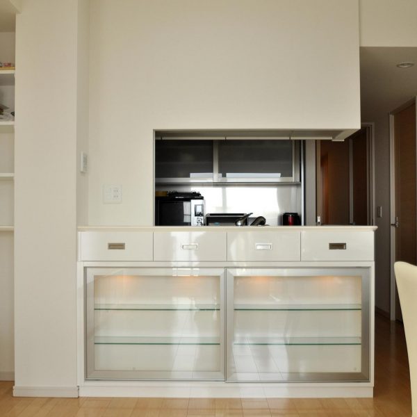 リビング・ダイニングルームにおけるカウンター下壁面収納 製作事例。