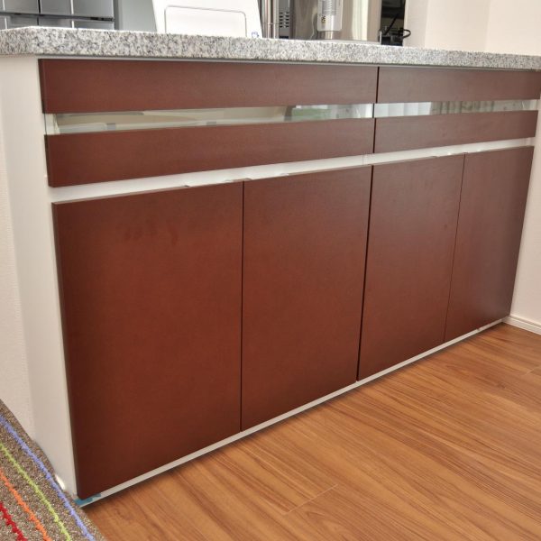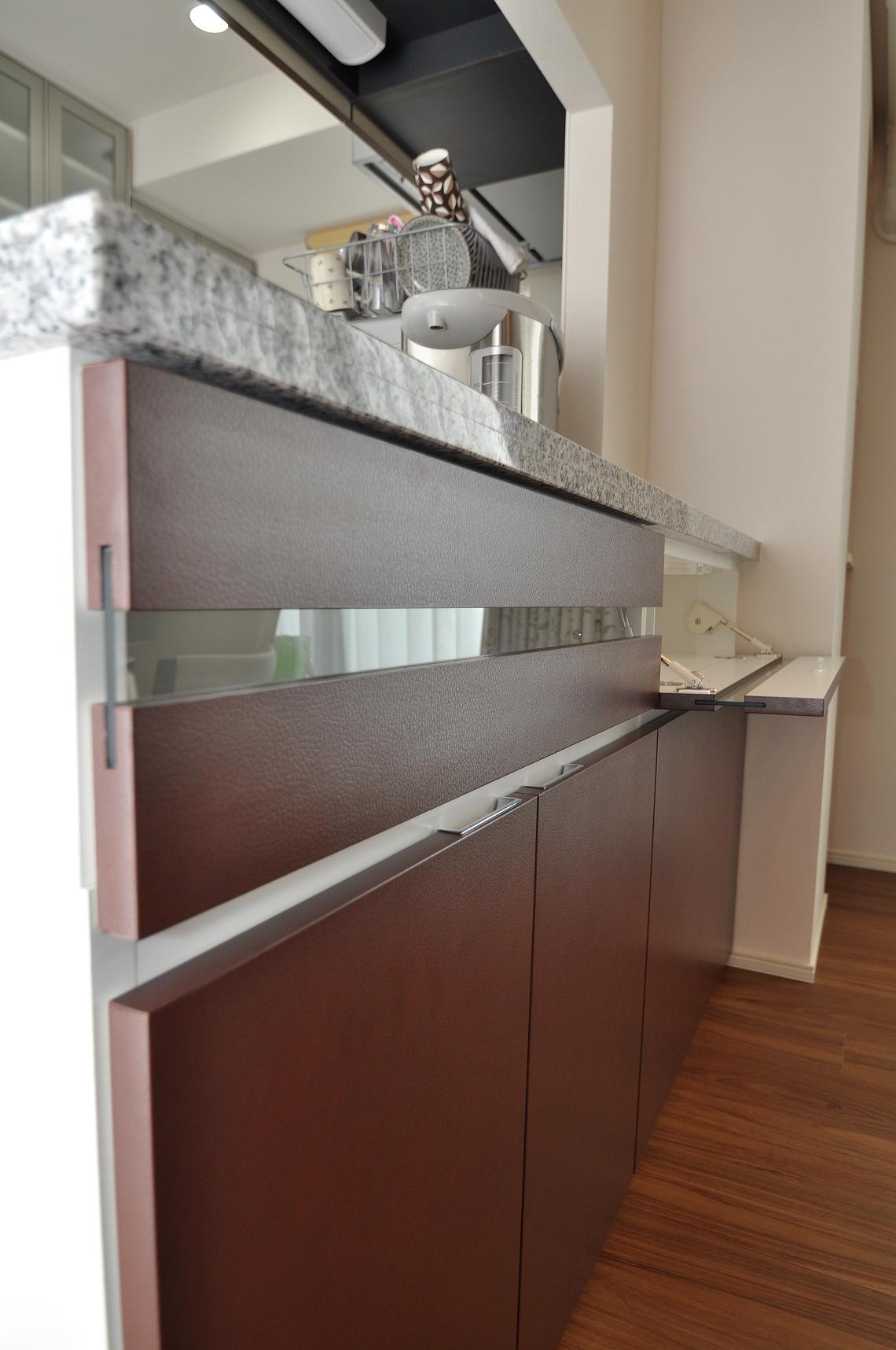 今回のカウンターボードの特徴は硝子扉意匠と色分けでしょうか。