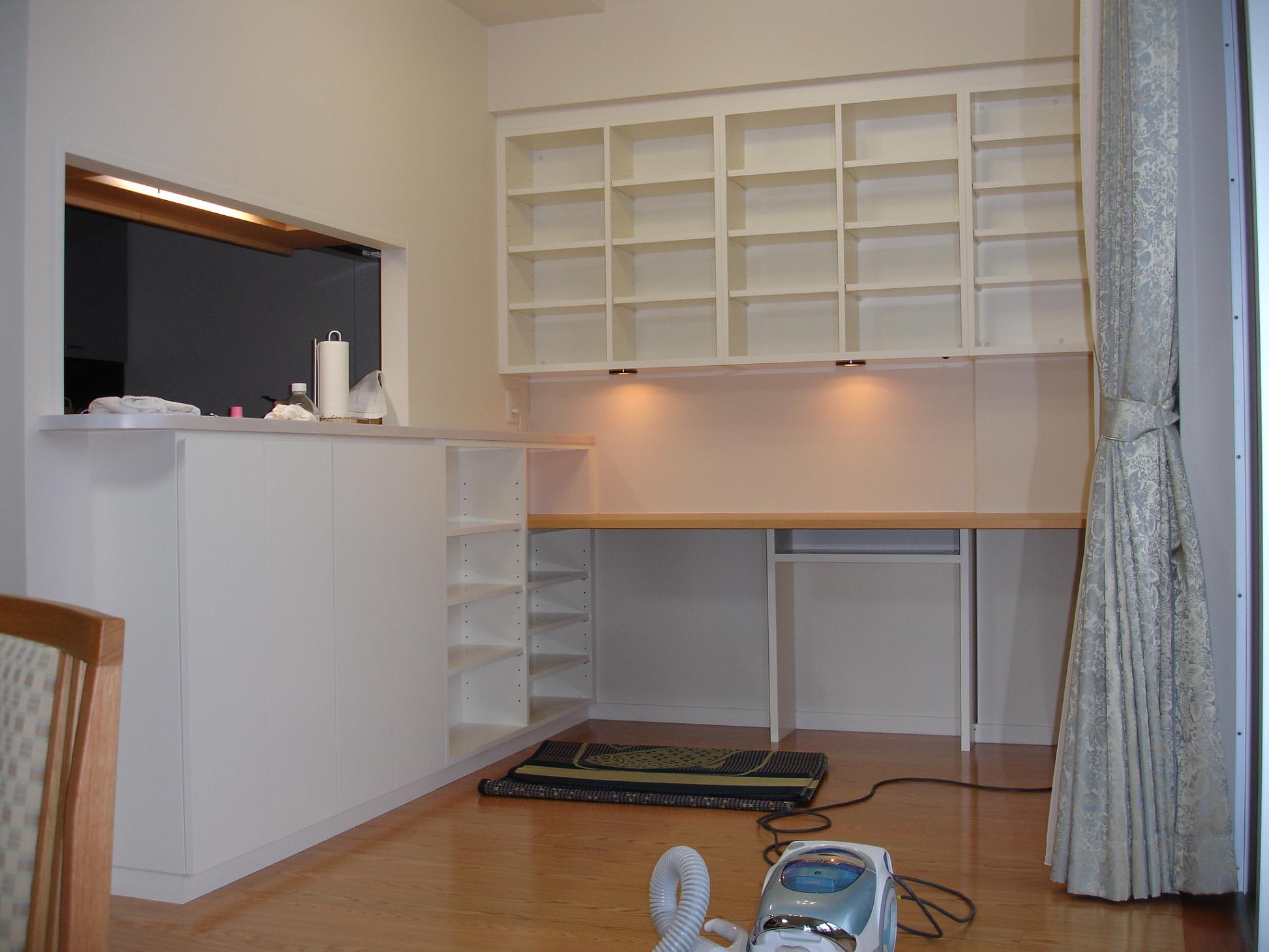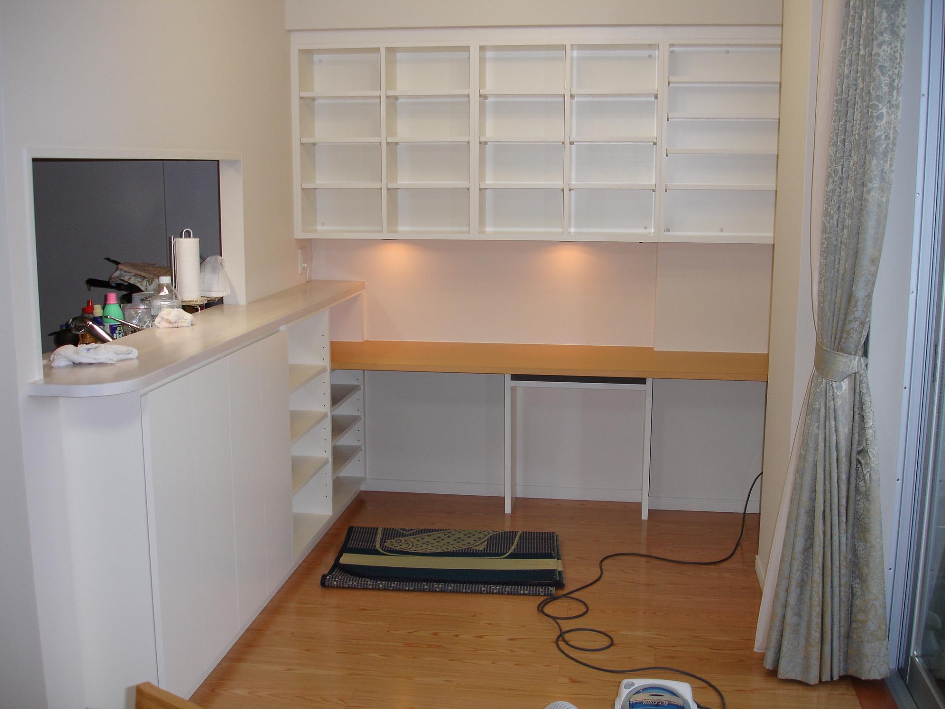 カウンター下収納・造作壁面収納 オーダーメイド家具の製作例。