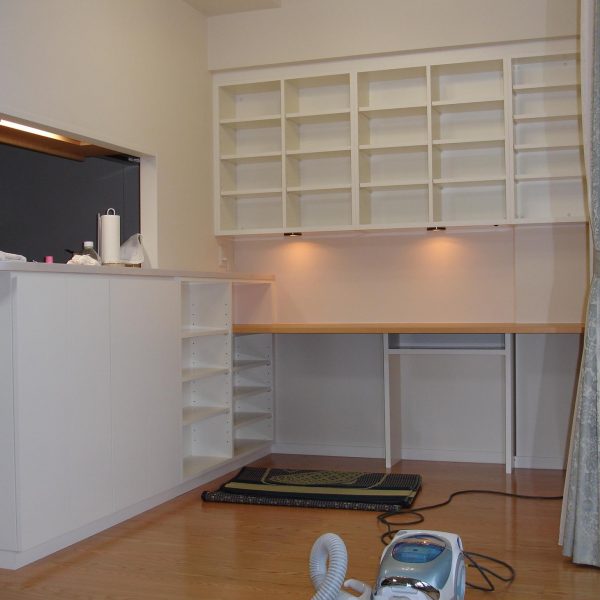 江東区にお住いのS様より、カウンター下収納と壁面収納をオーダーいただきました。