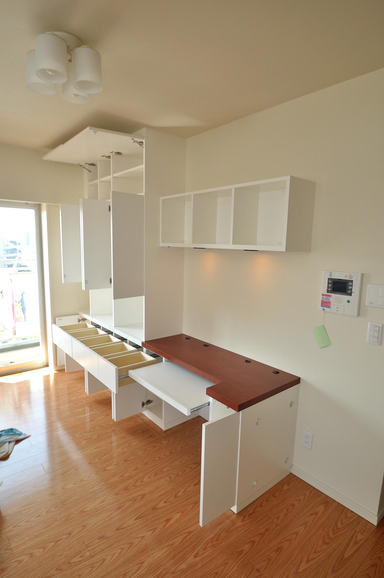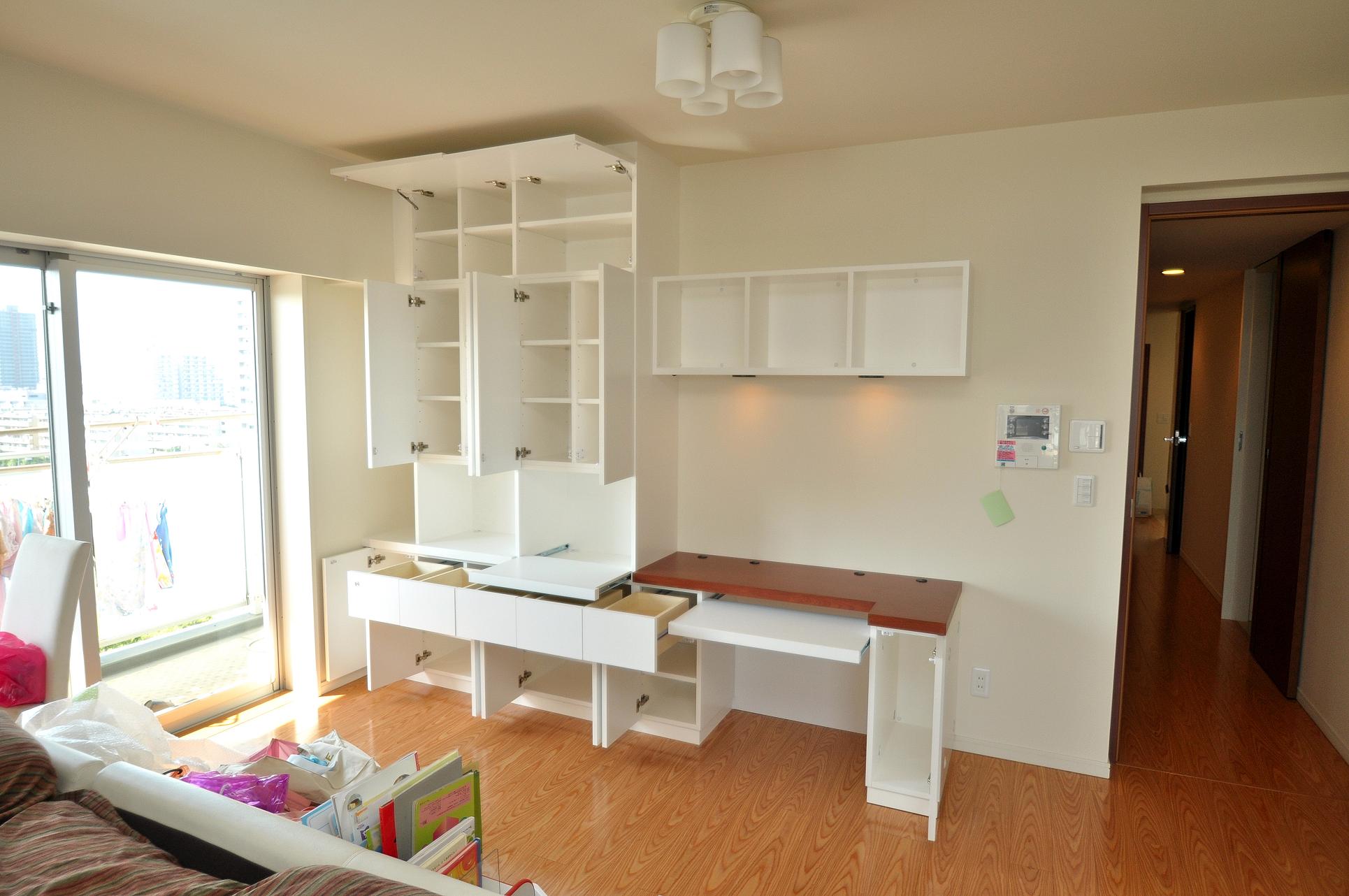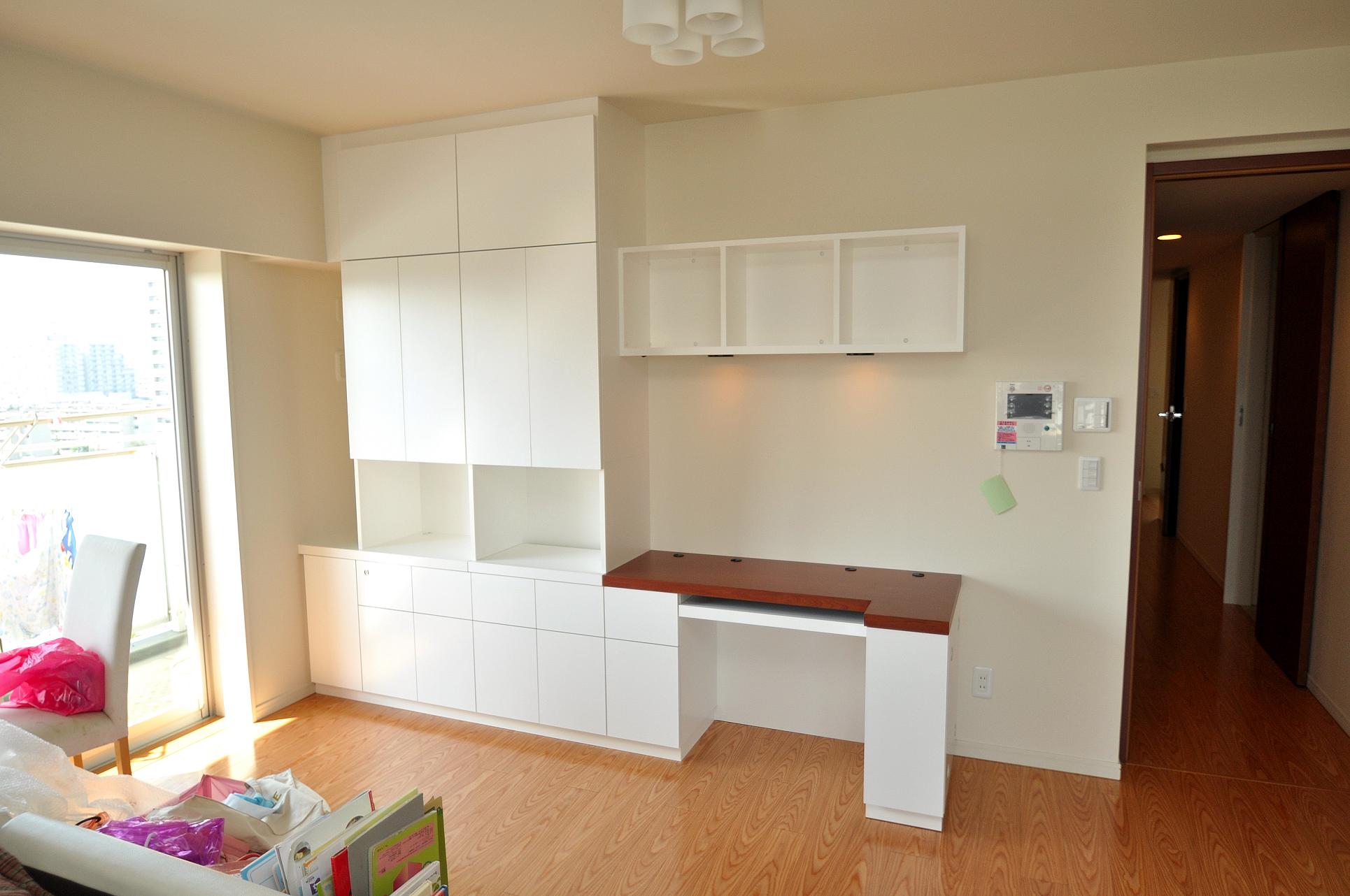 江東区 T邸 リビングボード(デスク付壁面収納) オーダーメイド 造作家具
