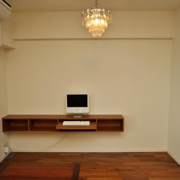 リビング・ダイニングルームにおけるデスク収納・吊式壁面収納 製作事例。