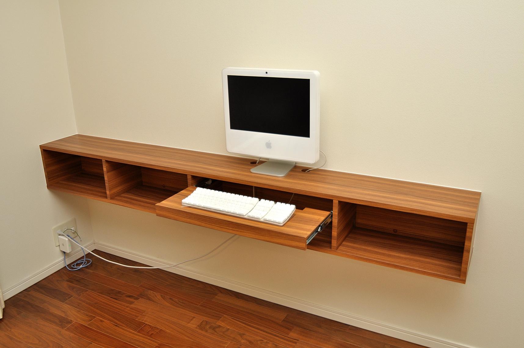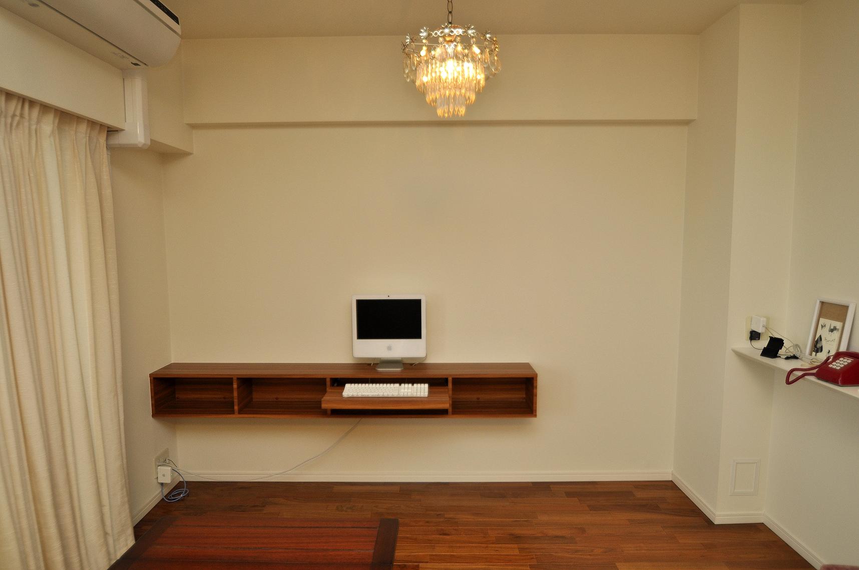 リビング・ダイニングルームにおけるデスク収納・吊式壁面収納 製作事例。