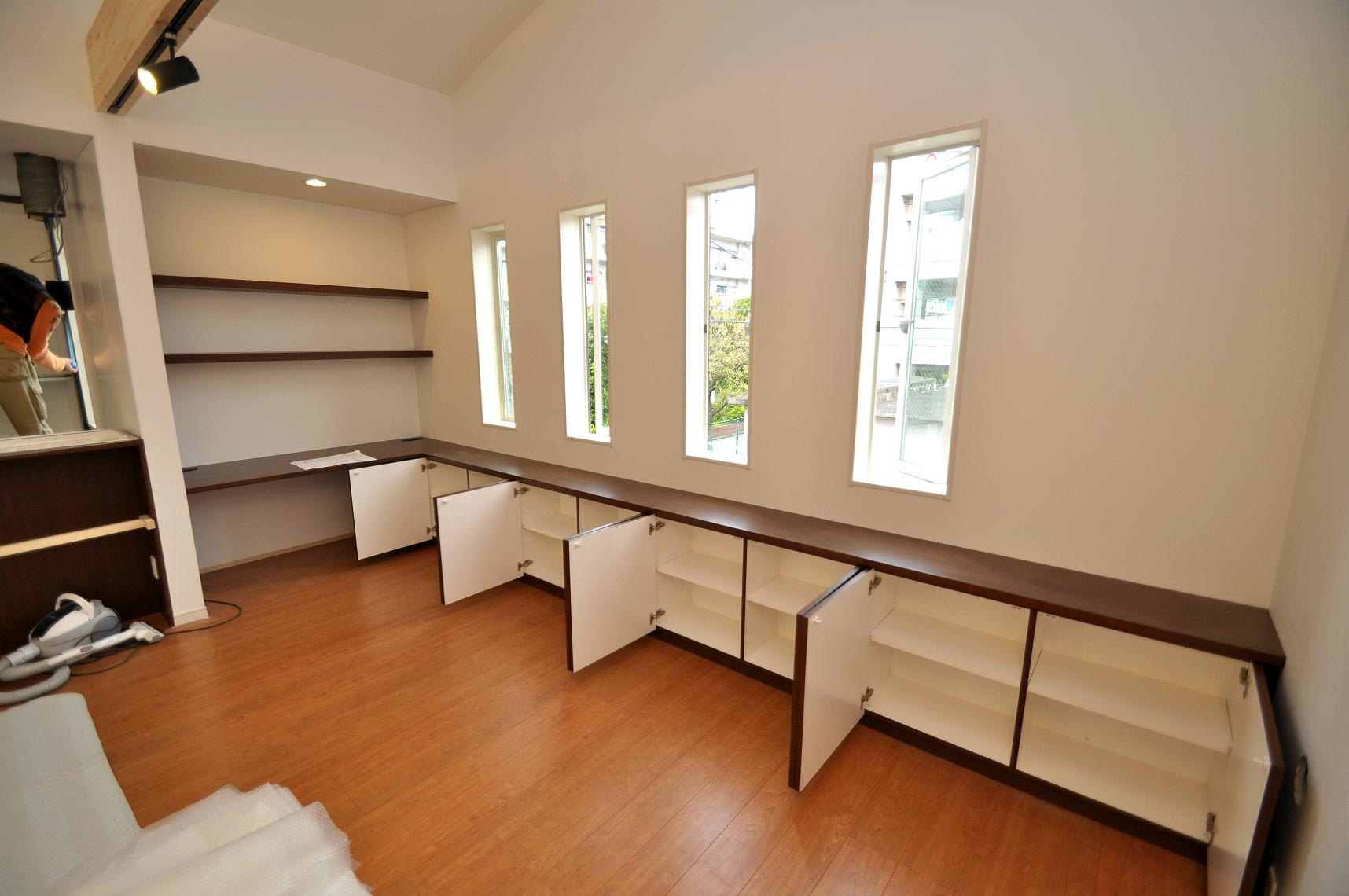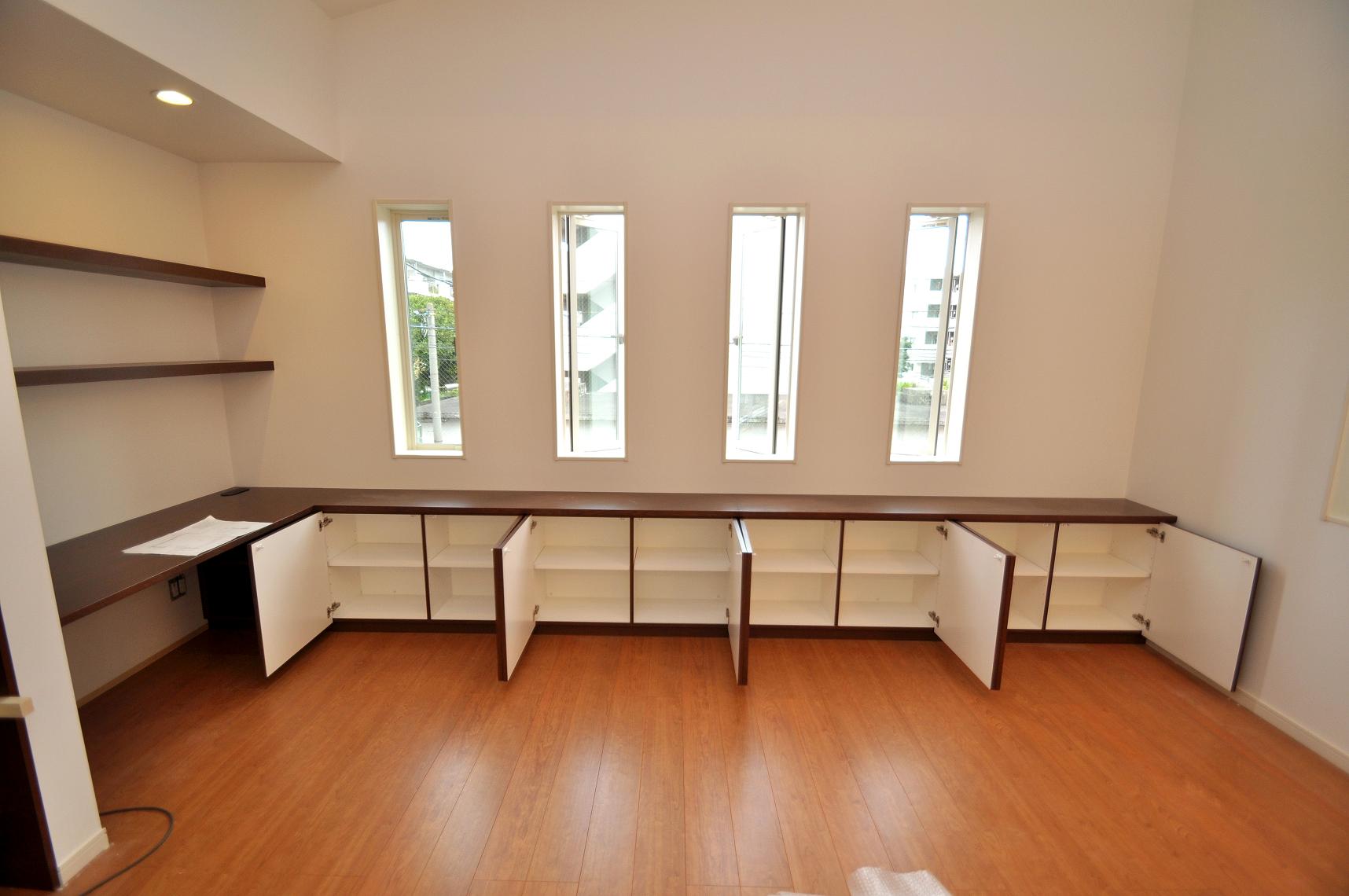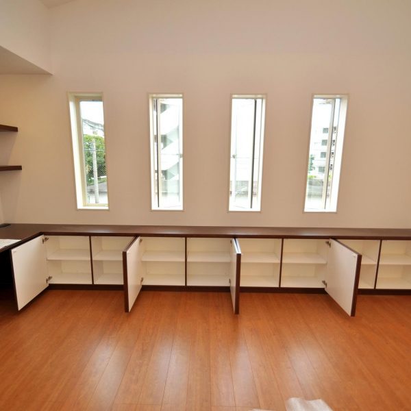 元請けの㈱工房様より、リビングボード(デスク収納・壁面収納)をオーダー頂きました。