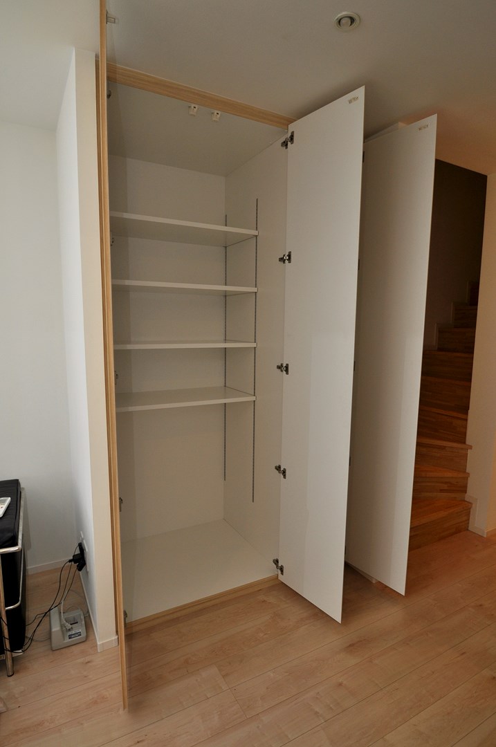 構造の特徴としては奥行きが深い為、可動棚板をセットバック。