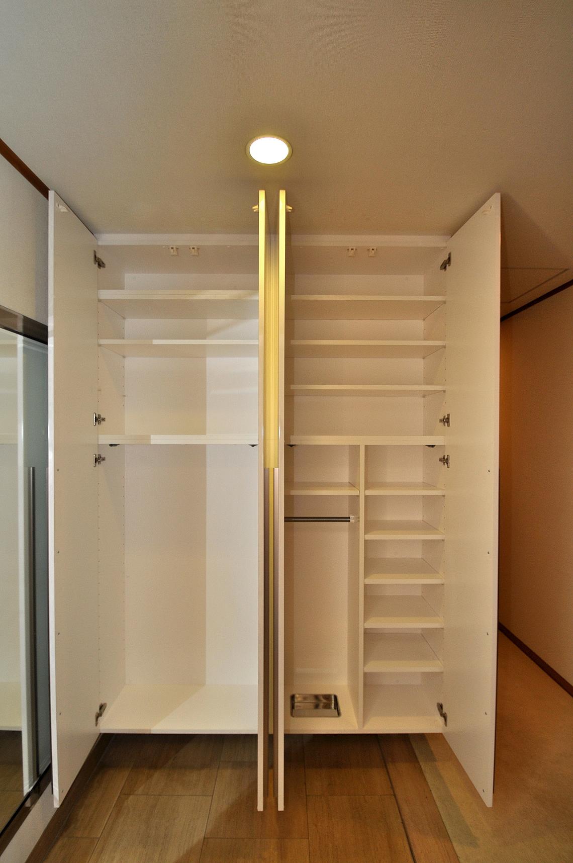 既存で収まっていた下足収納が壁面へ飲み込ませてあるタイプのため、