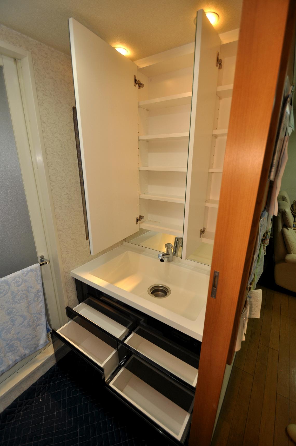上部のミラー収納は3面鏡としてお使いいただけますので、