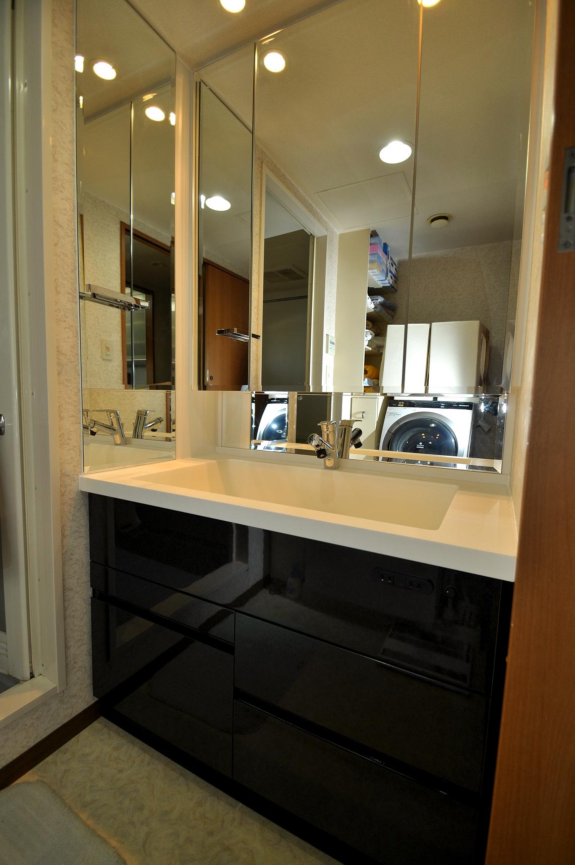 既存収納を撤去した部分をミラーでカバーしつつ、