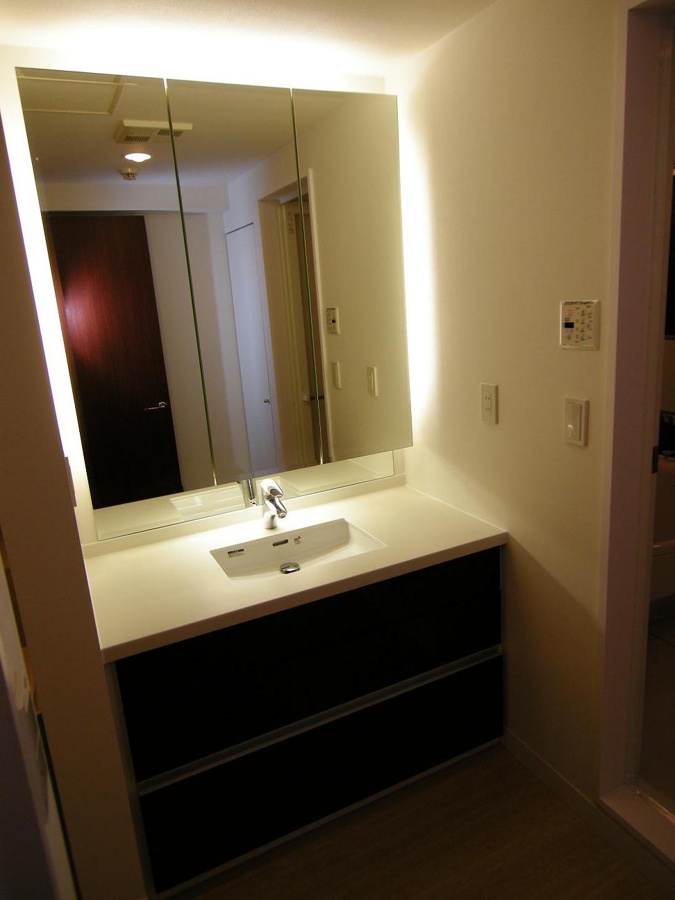 今回の洗面台の特徴は、四方を照らす間接照明と言えるでしょう。
