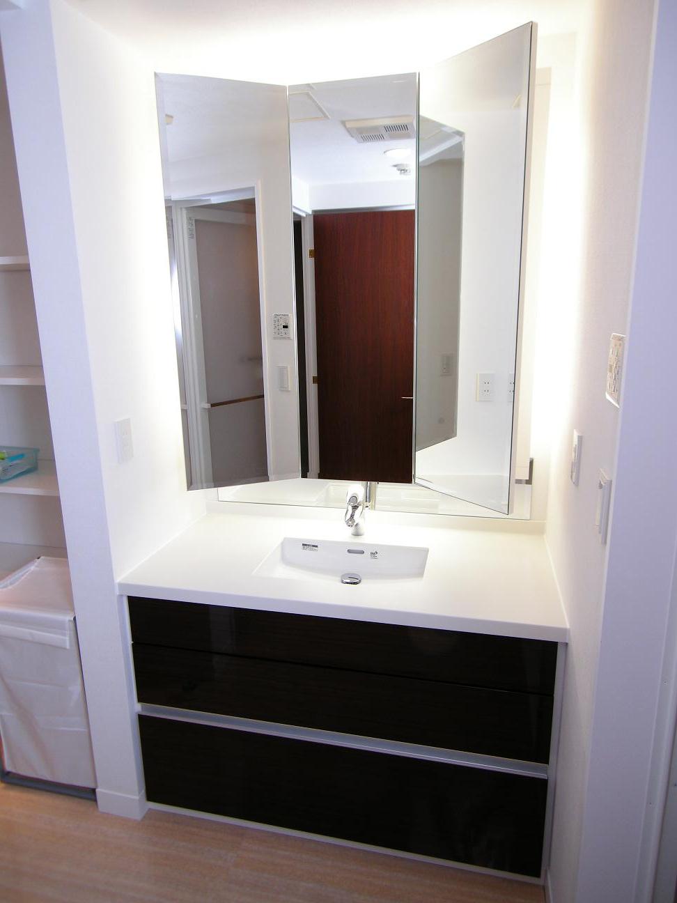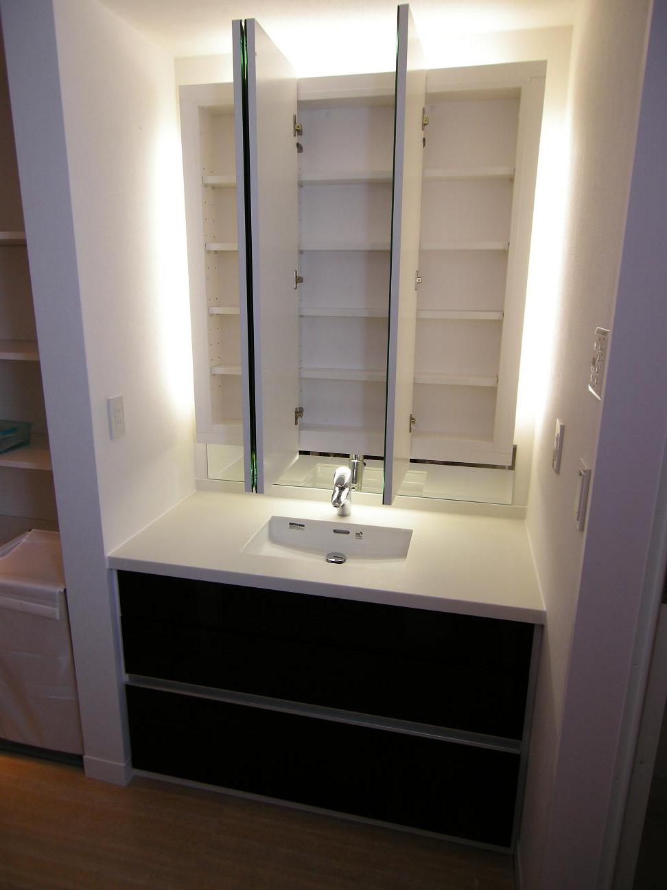 間接照明と大型の三面鏡をご希望いただいたことから納品デザインに決定。