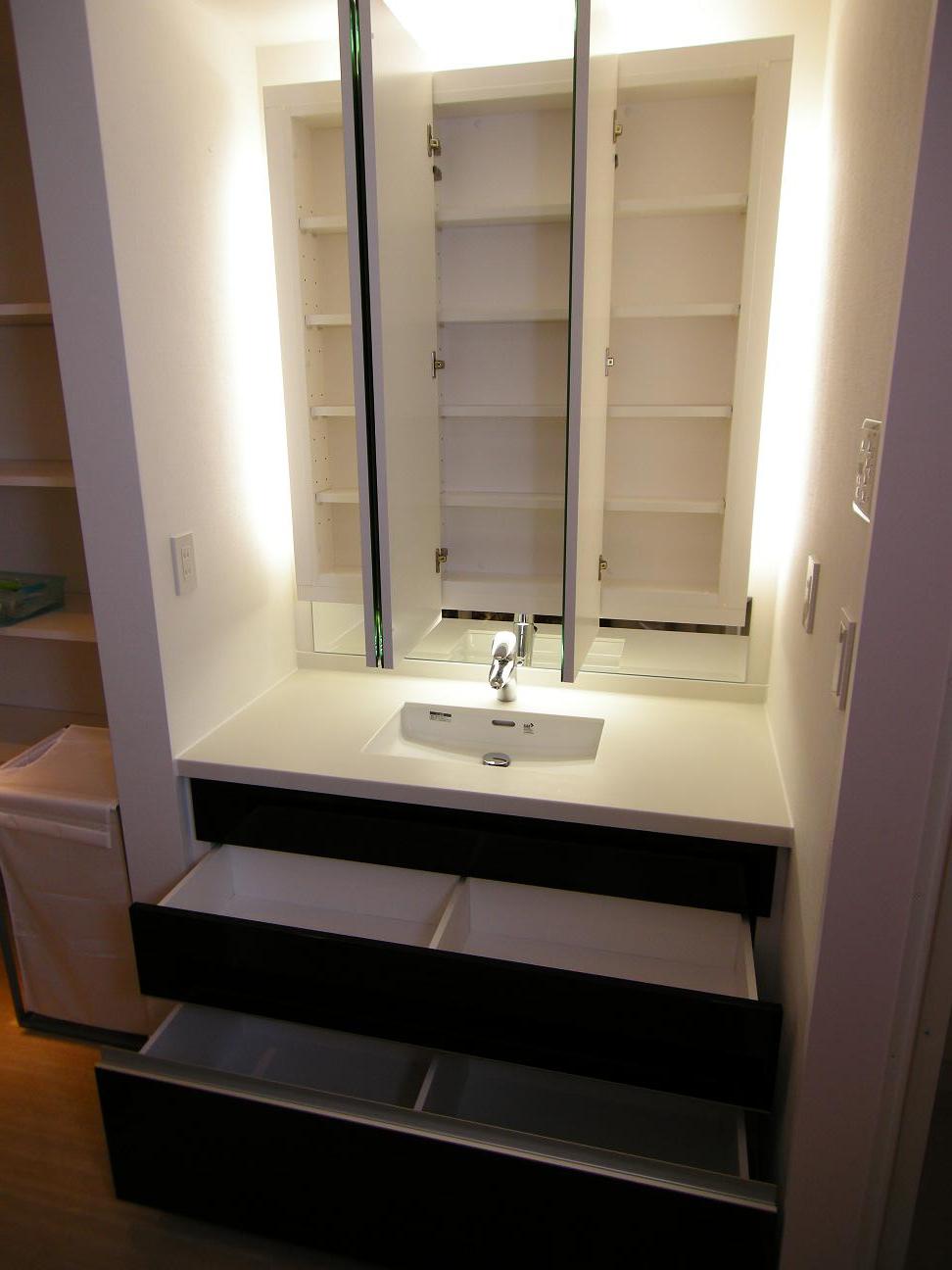 品川区 Y邸 洗面化粧台/ミラー収納 オーダーメイド 造作家具