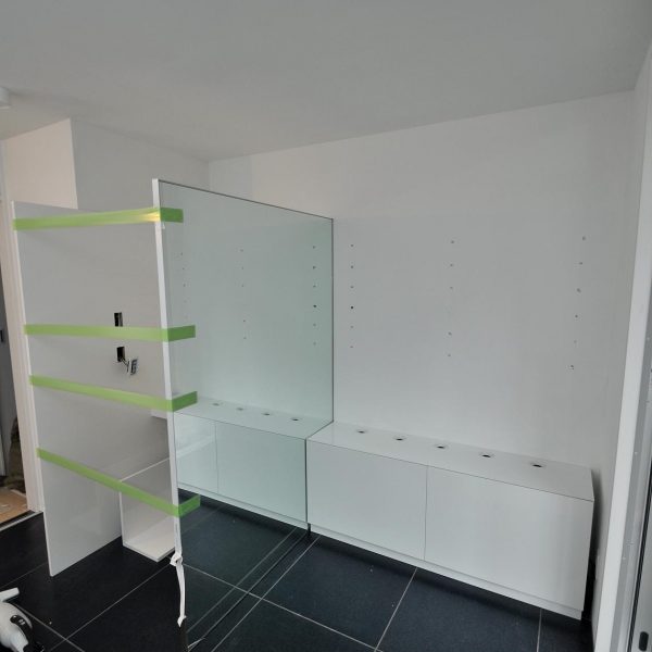 店舗内における間接照明収納・ミラーデスク オーダー家具 製作事例