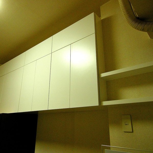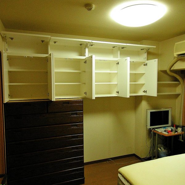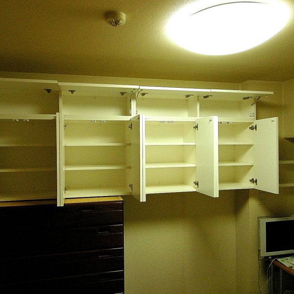 洋室における吊戸棚・壁面収納 製作事例。