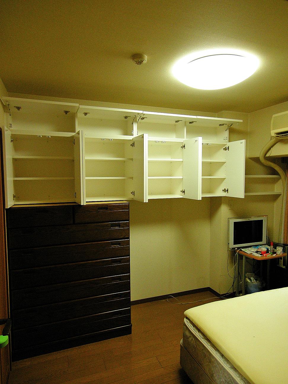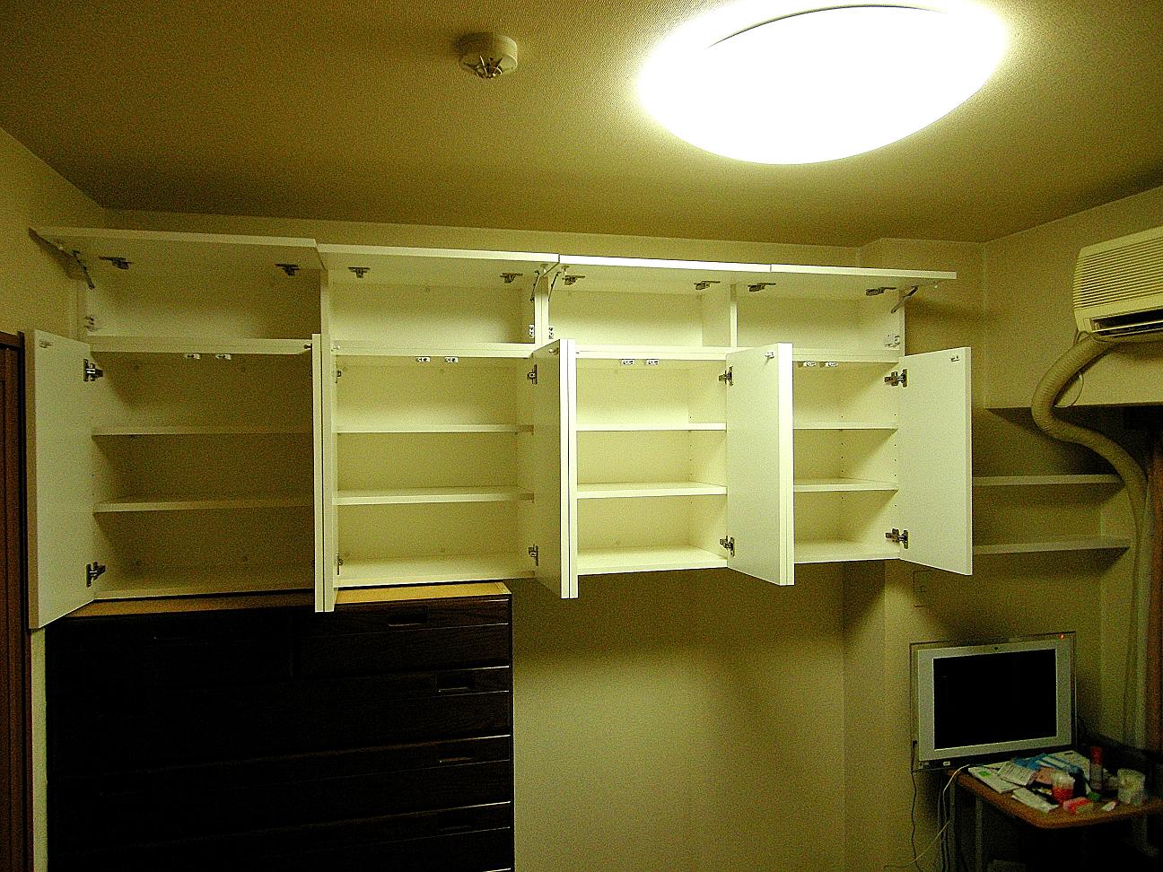 洋室における吊戸棚・壁面収納 製作事例。