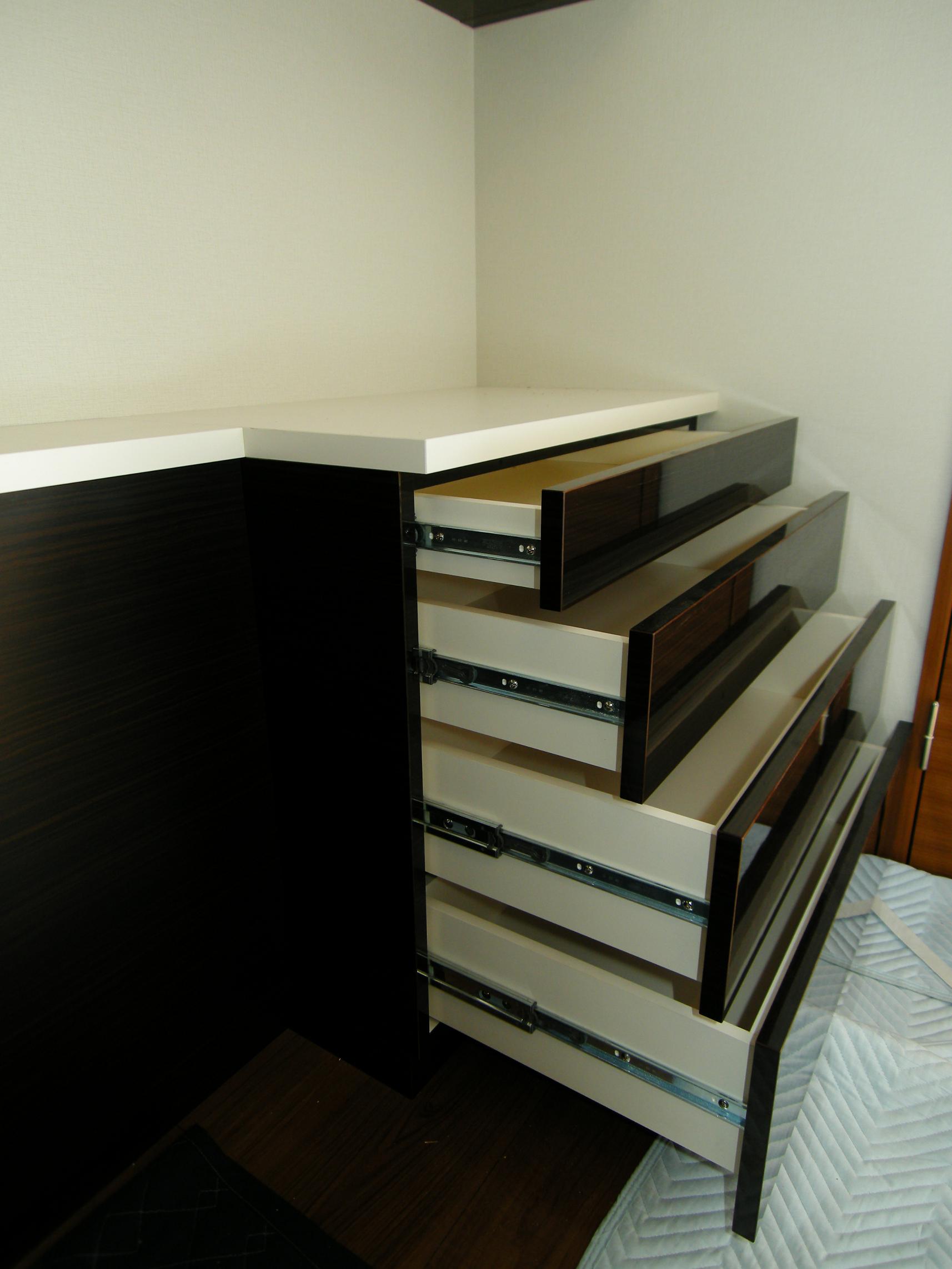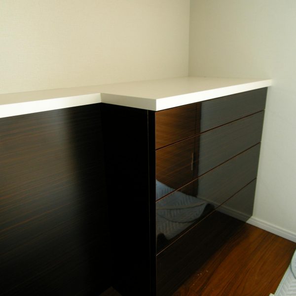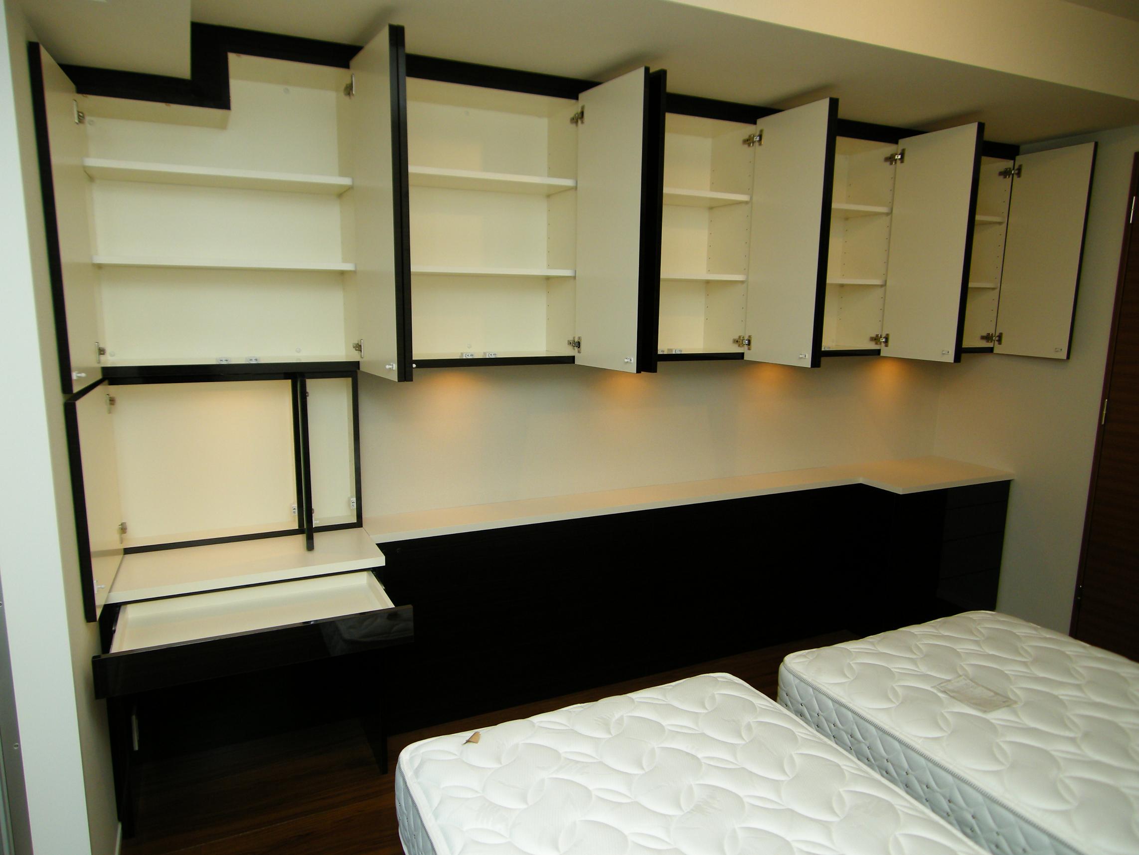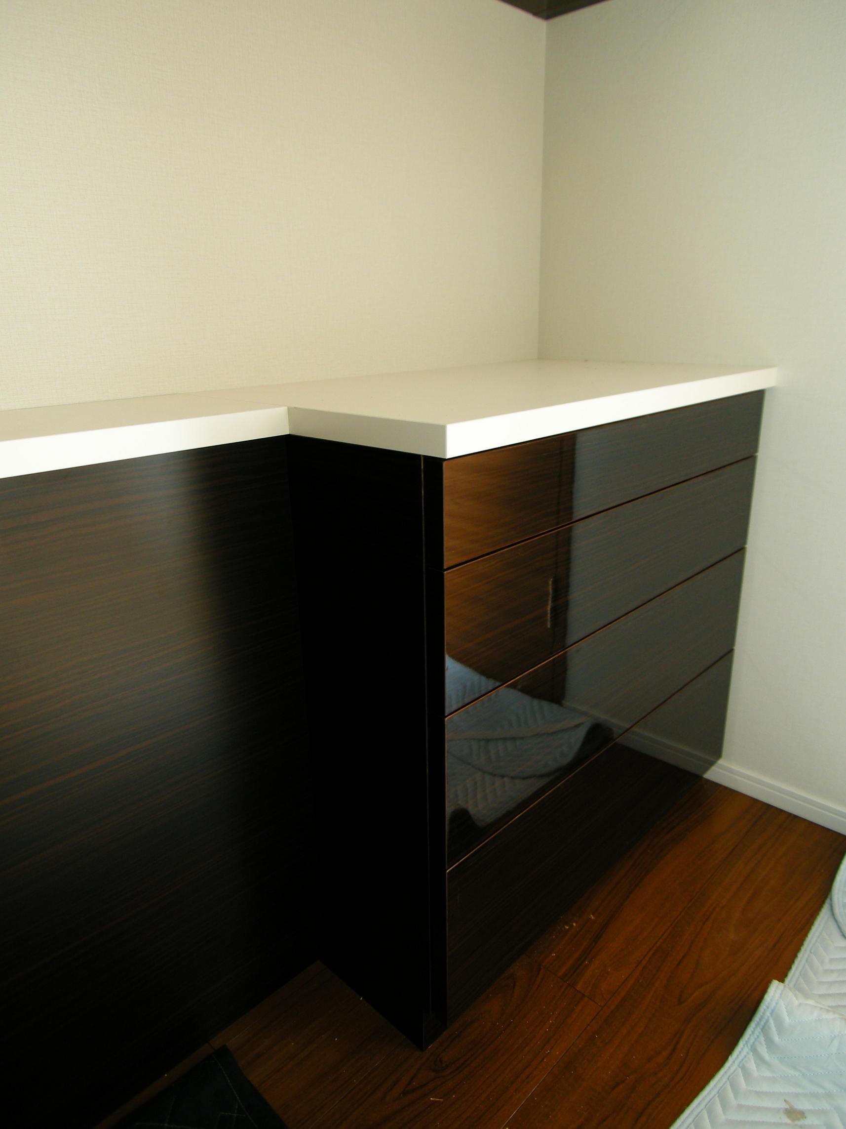 洋室内のベッドヘッド・ドレッサー・壁面収納の製作事例