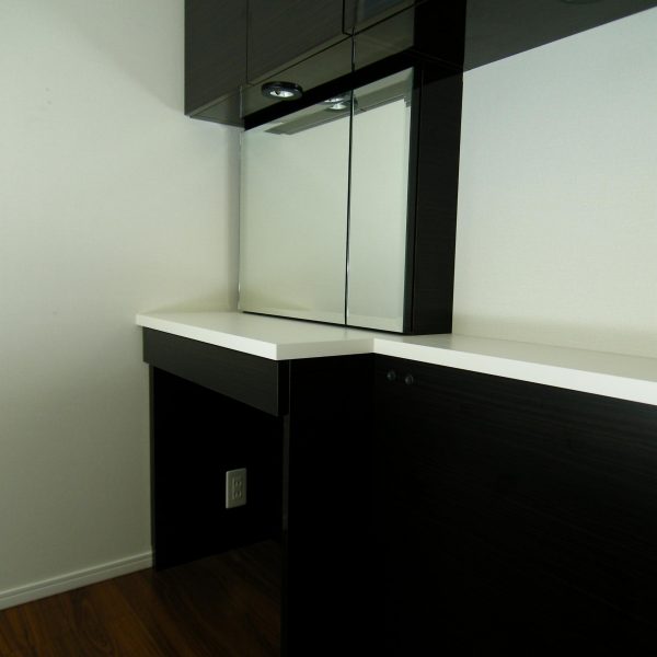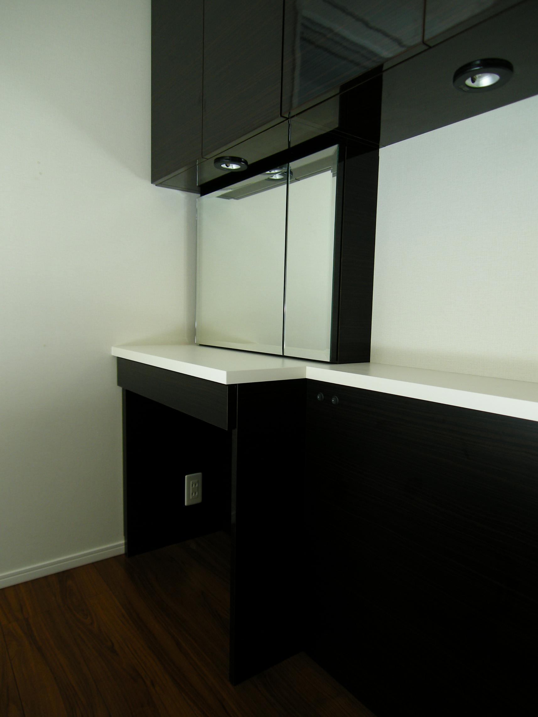 ナイトライトとドレッサー部分の照明は、2系統にスイッチを分けて施工致しました。
