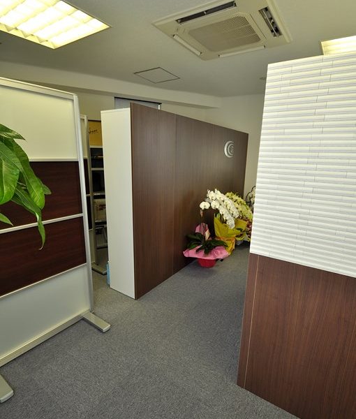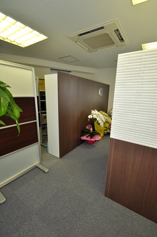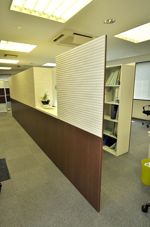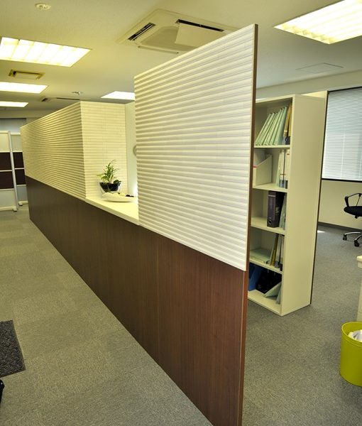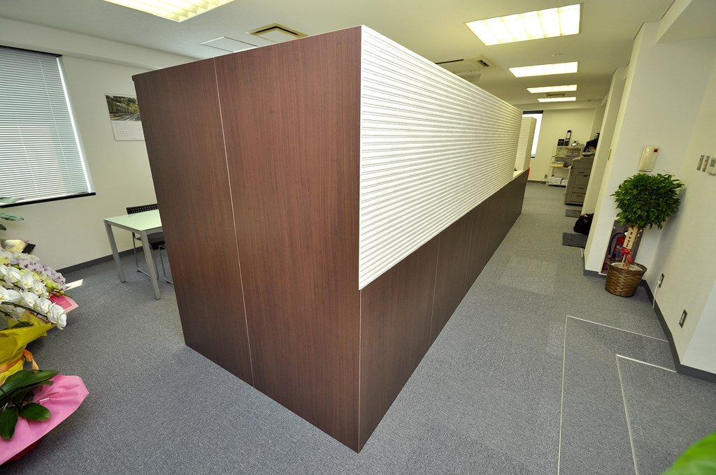 事務所内における受付パーテーション/間仕切り収納 オーダーメイド 造作家具 製作事例