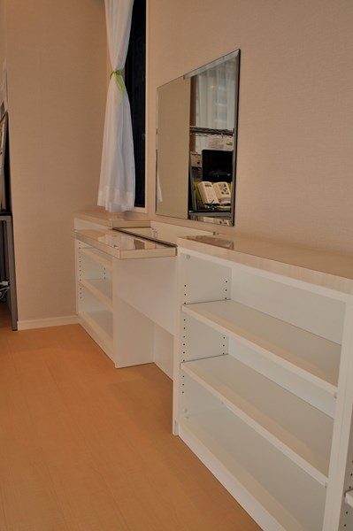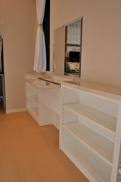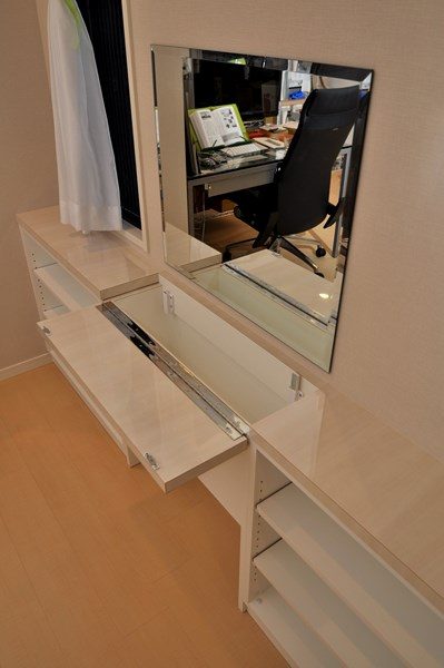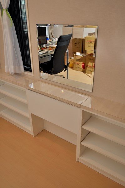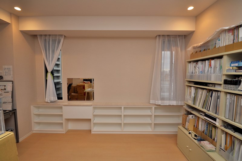 造作内容の特徴は、本棚の中に簡易ドレッサー部分を設けたところでしょうか。
