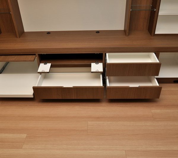 シンプルなサイドボードですが、マルチメディアポート移設を考慮して抽斗構造に扁平を掛けてあります。