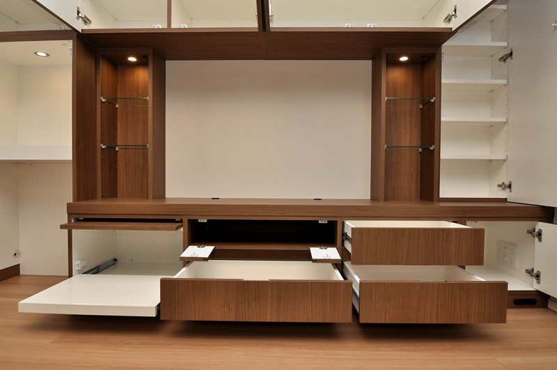 リビング・ダイニングルームにおけるリビングボード・リビング壁面収納 オーダー家具 製作事例