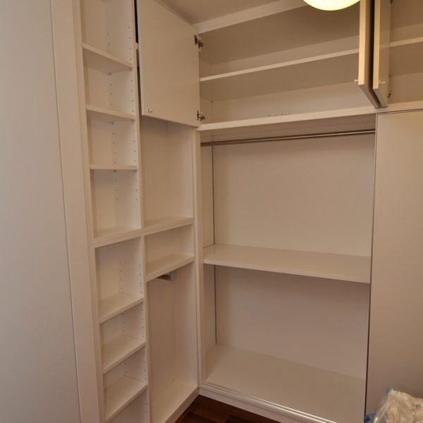 上品な高級感に溢れる、明るいホテルライクなワードローブに仕上げることが出来ました。