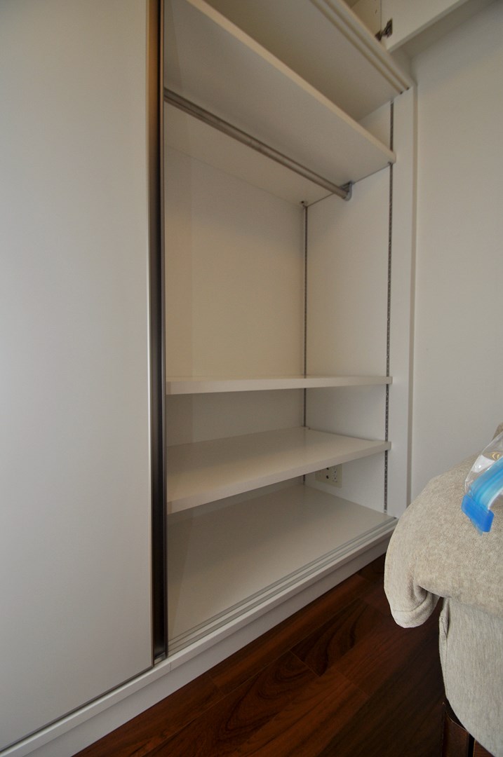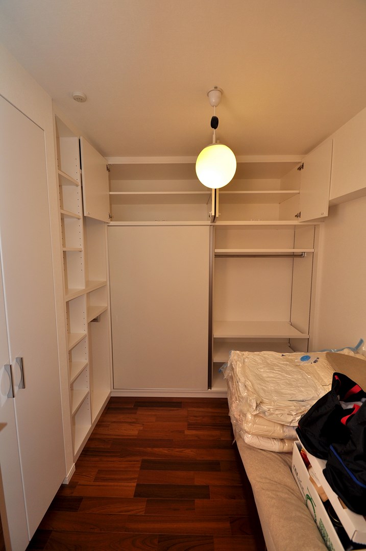 左側のスペースは上下に分けられる本格的なワードローブとして製作。