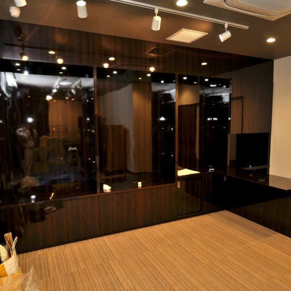 店舗内における造作壁面収納/受付カウンター オーダー家具 製作事例