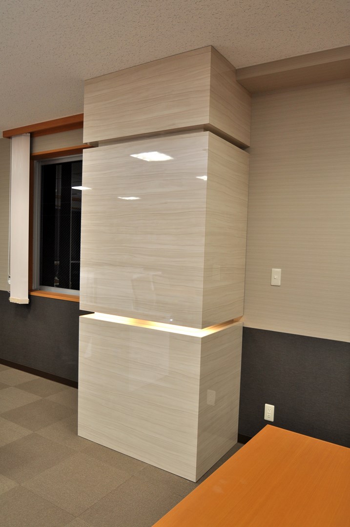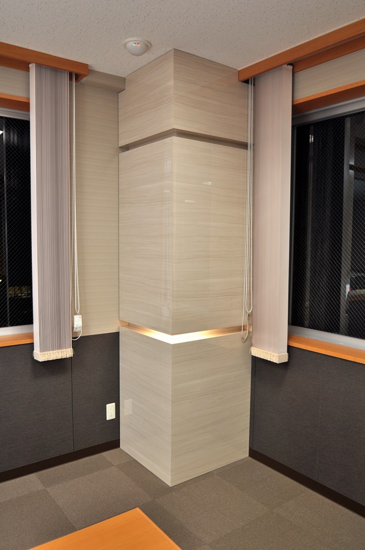 大手商社役員室内における造作飾り柱 オーダー行灯柱 製作事例