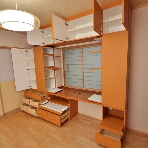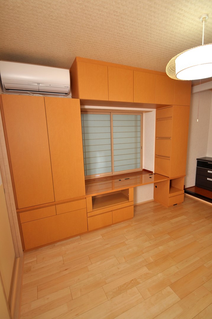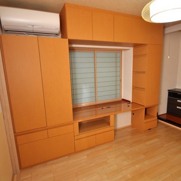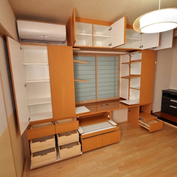 洋室内ににおける 造作デスク壁面収納/洋室壁面収納 オーダー家具 製作事例