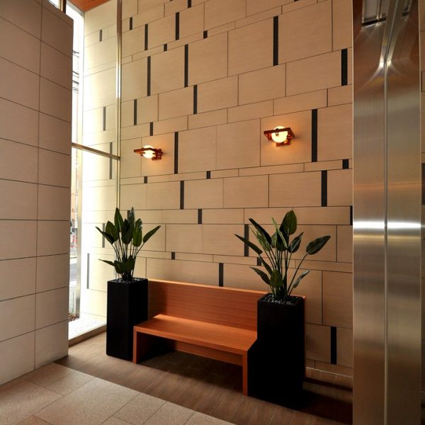 マンションエントランス内におけるベンチ/什器製作 造作家具 製作事例