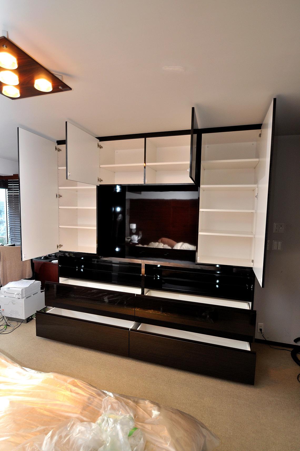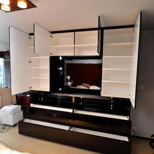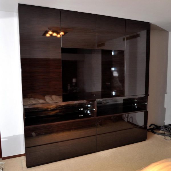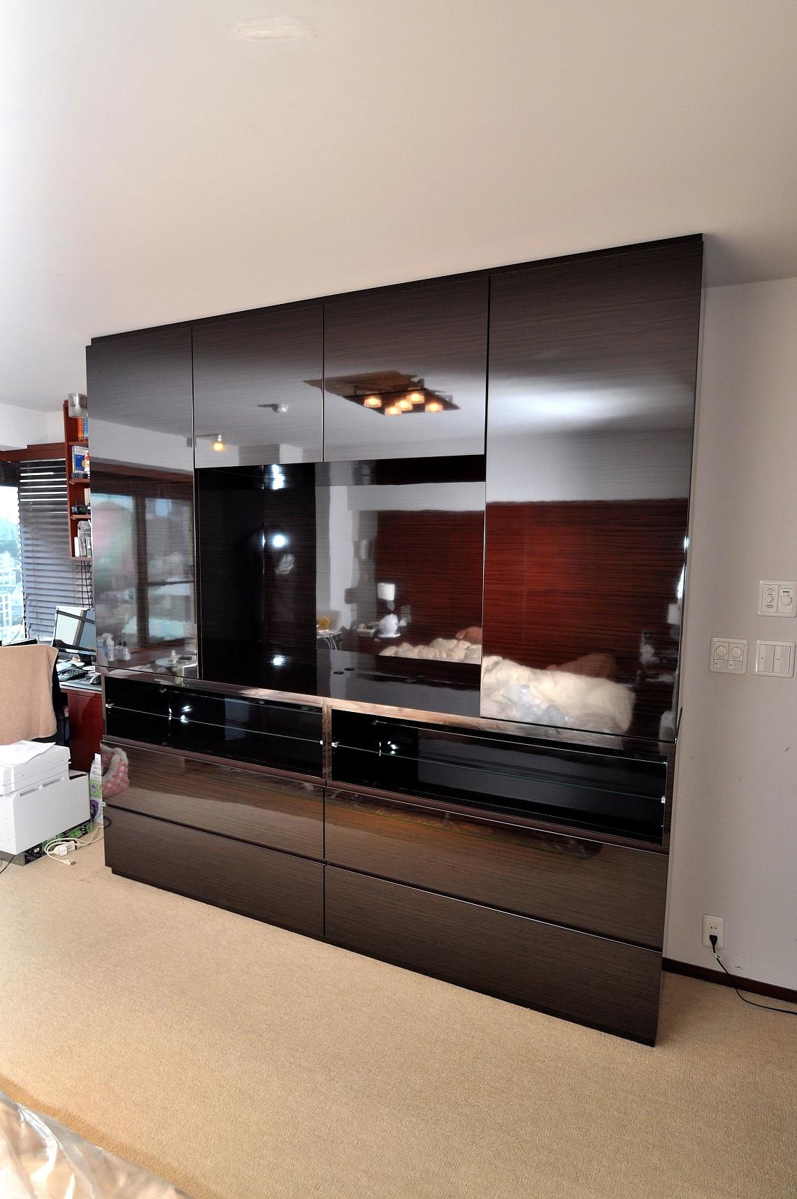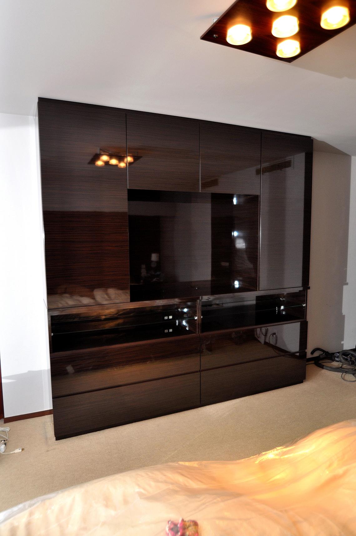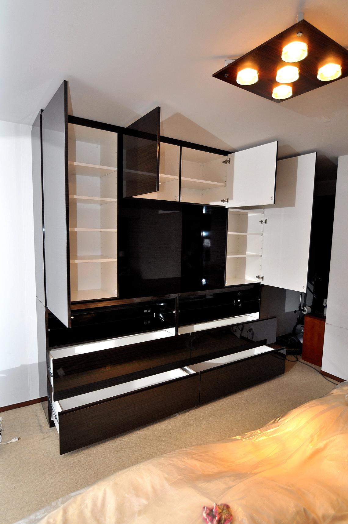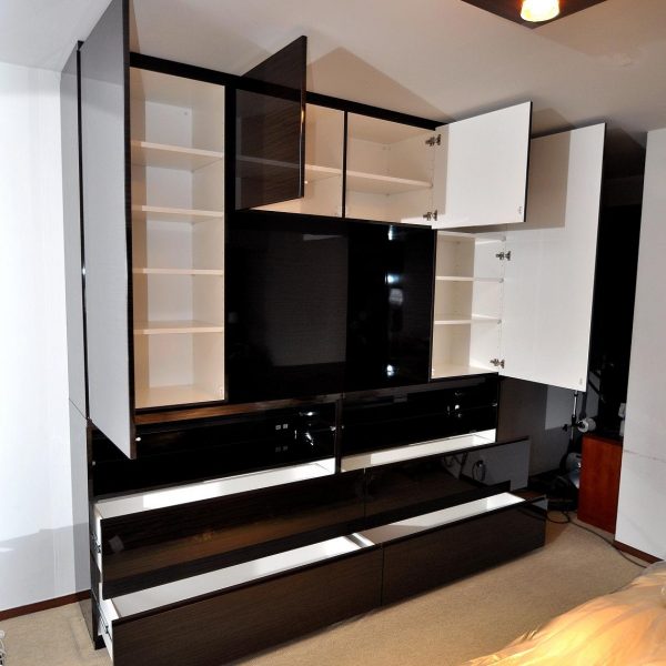 ベッドルーム・洋室内におけるTV台・洋服箪笥・壁面収納 オーダー家具製作事例