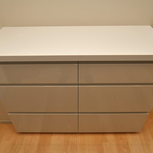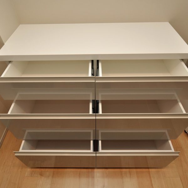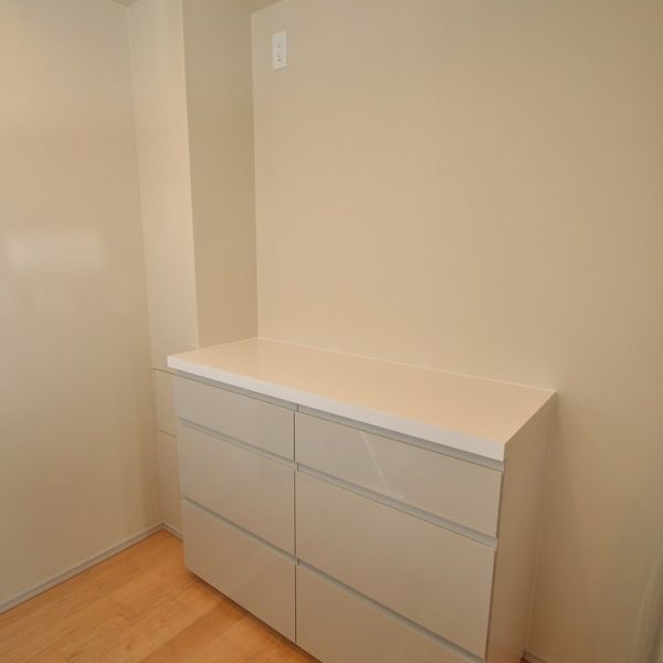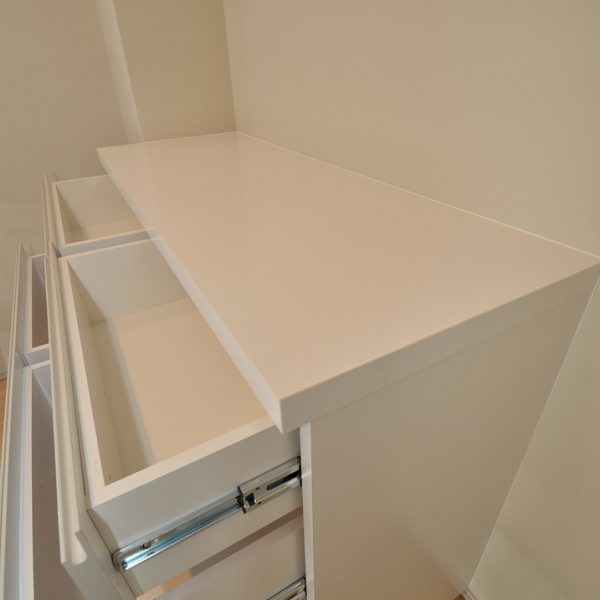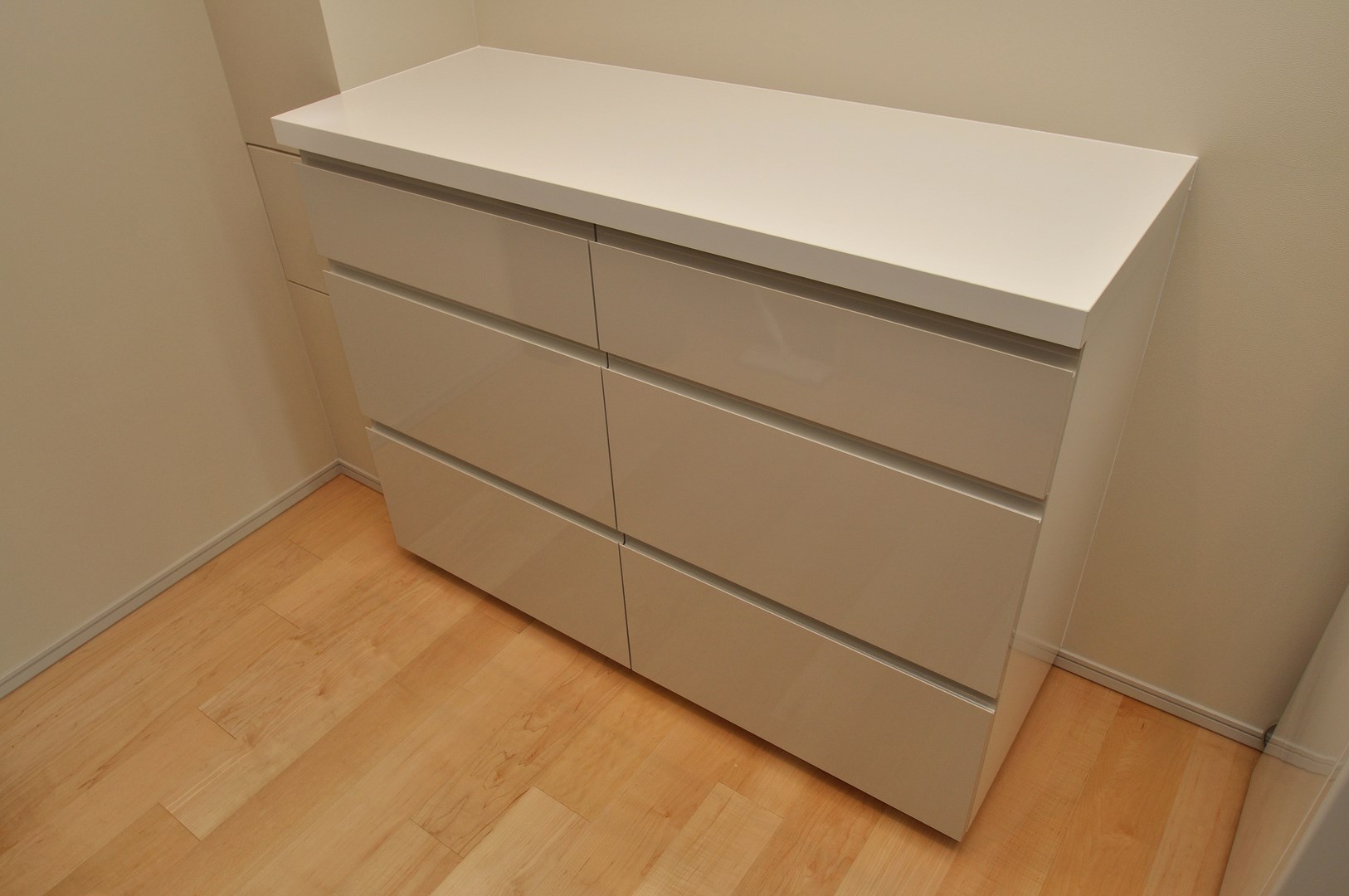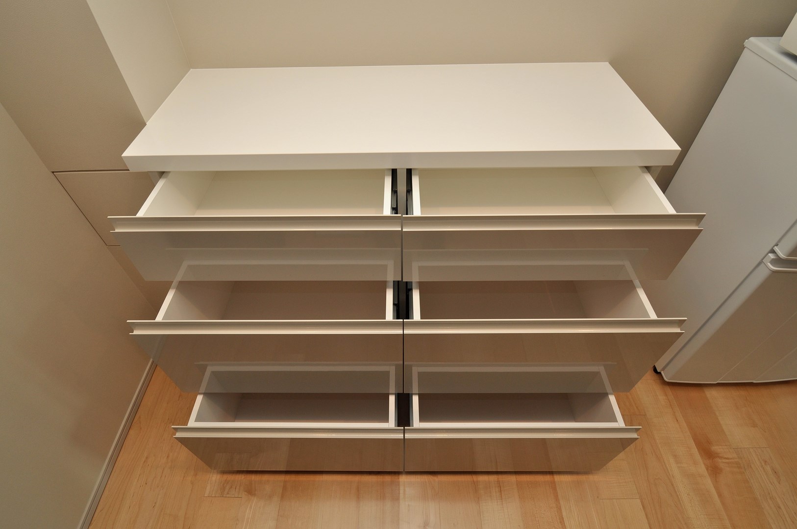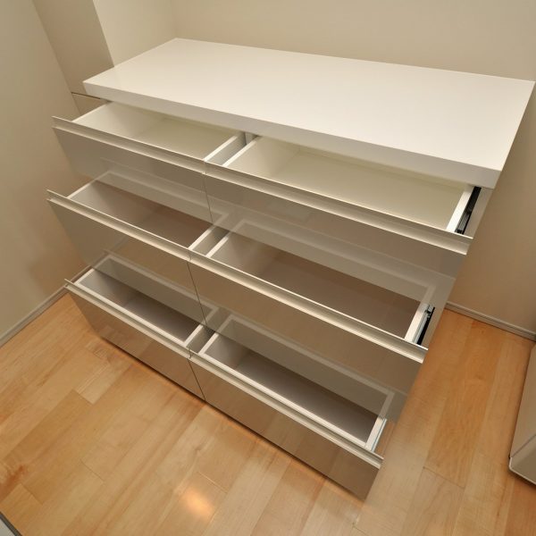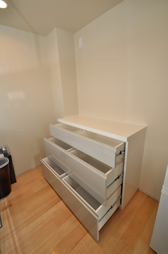 抽斗の前板にはメラスクープエッジのポストフォーム材を採用。