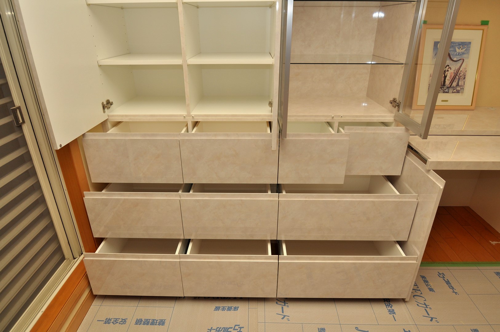 割付は開き戸と抽斗、検索スペース下のスライドカウンター部分には、