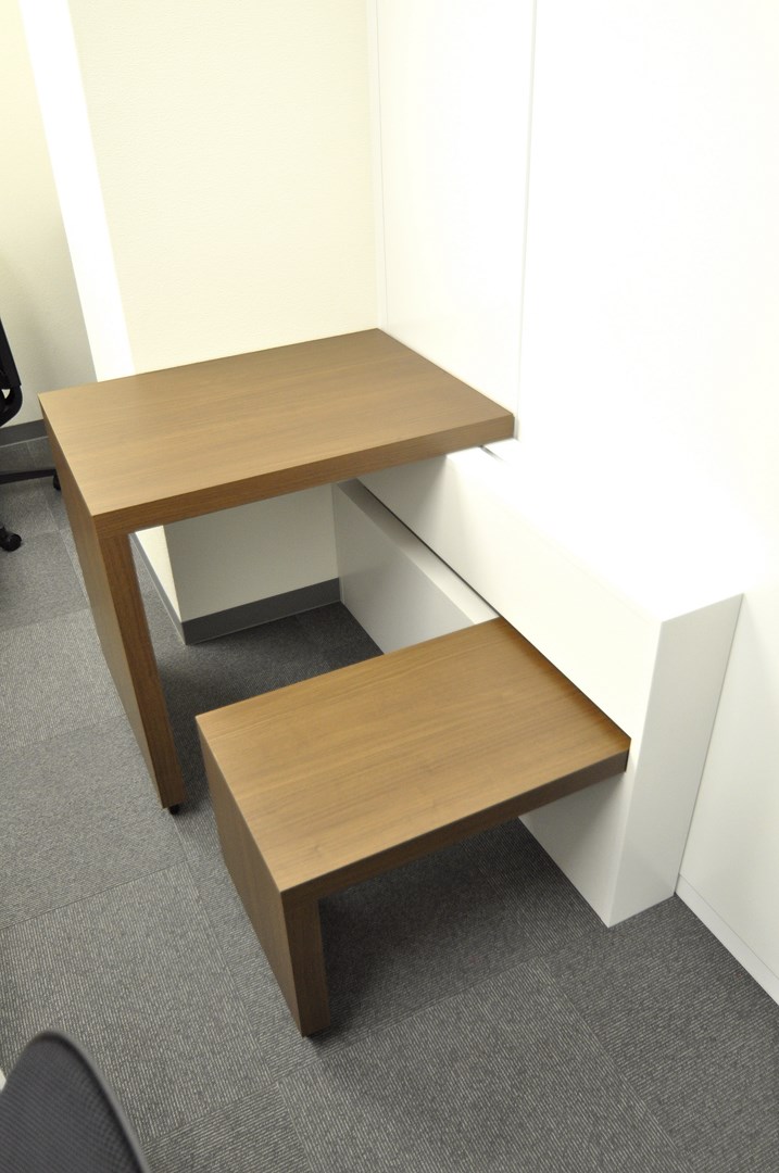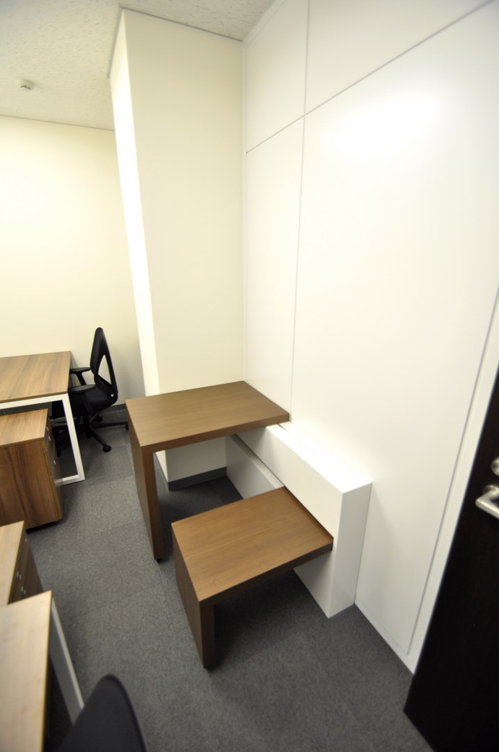状況に応じてデスクの位置とベンチの位置をスイッチできることも特徴と言えるでしょう。