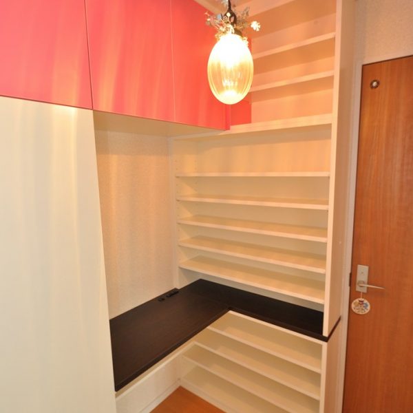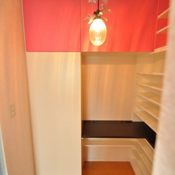 天袋部分の扉にはベイビーピンクを採用し、茶色と桃色の組み合わせがスイートで印象的です。