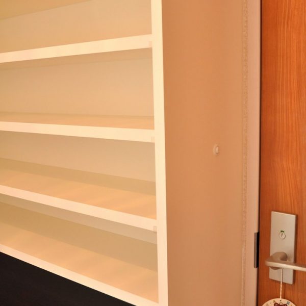 今回製作させていただいたデスク収納の特徴は、クローゼット機能を有しているところでしょうか。