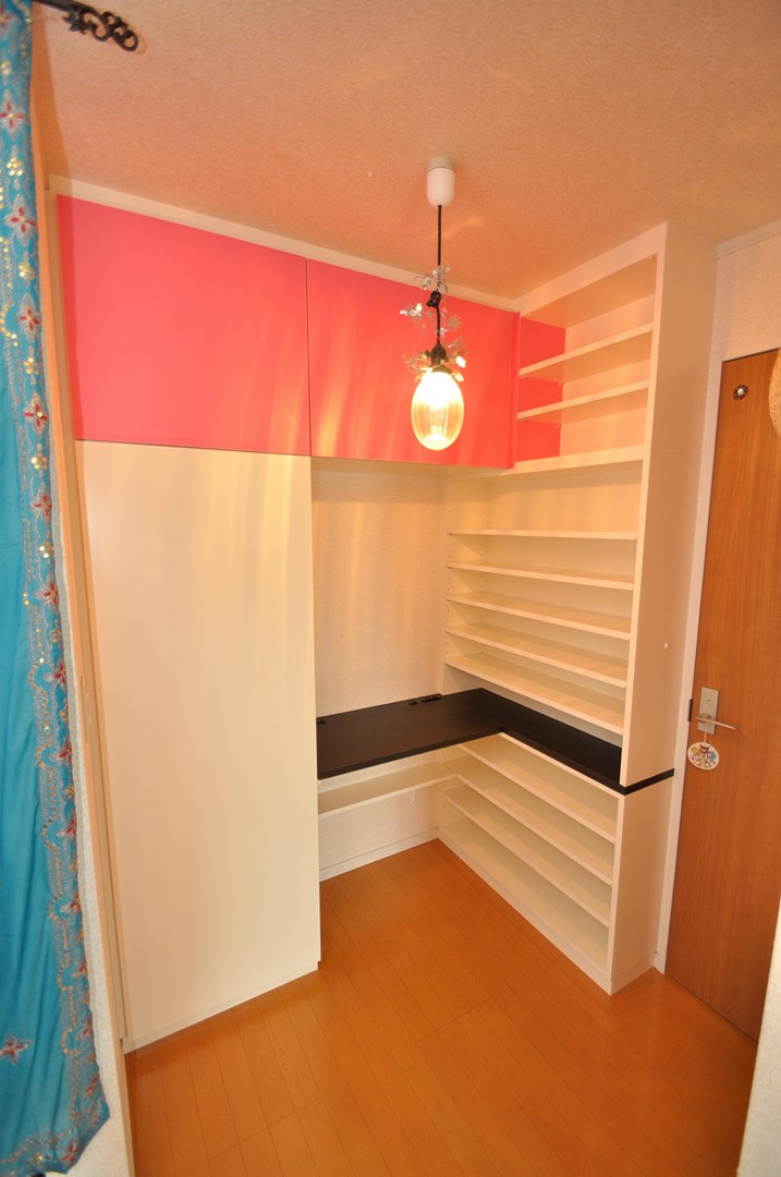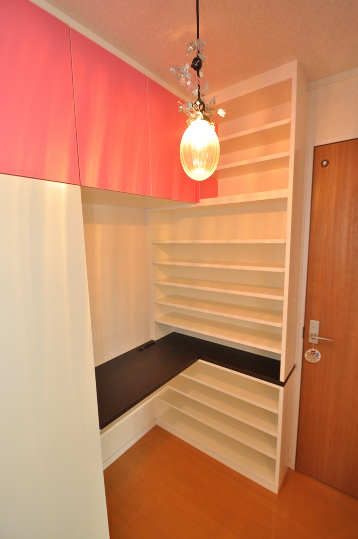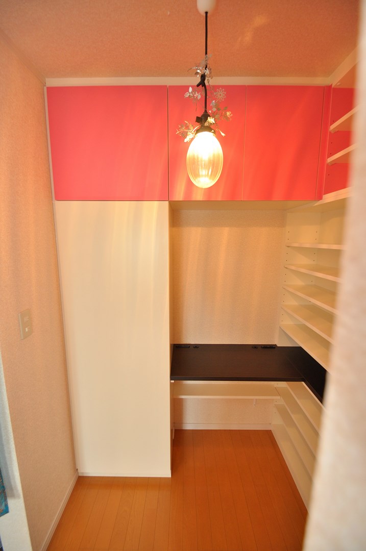 天袋部分の扉にはベイビーピンクを採用し、茶色と桃色の組み合わせがスイートで印象的です。