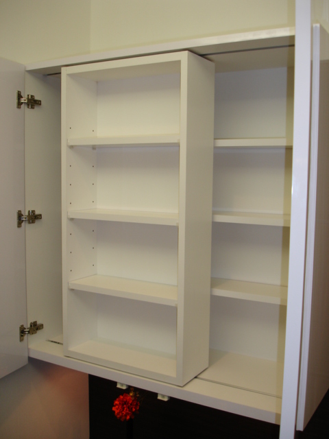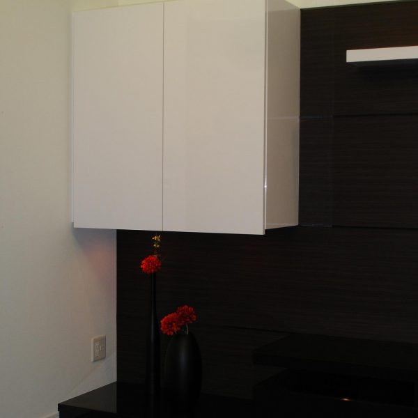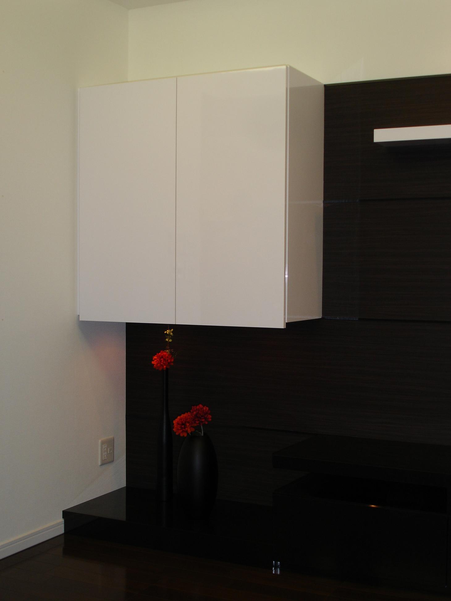 ポイントとして施工したメディア収納(左上の白い箱)。