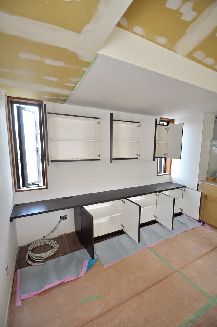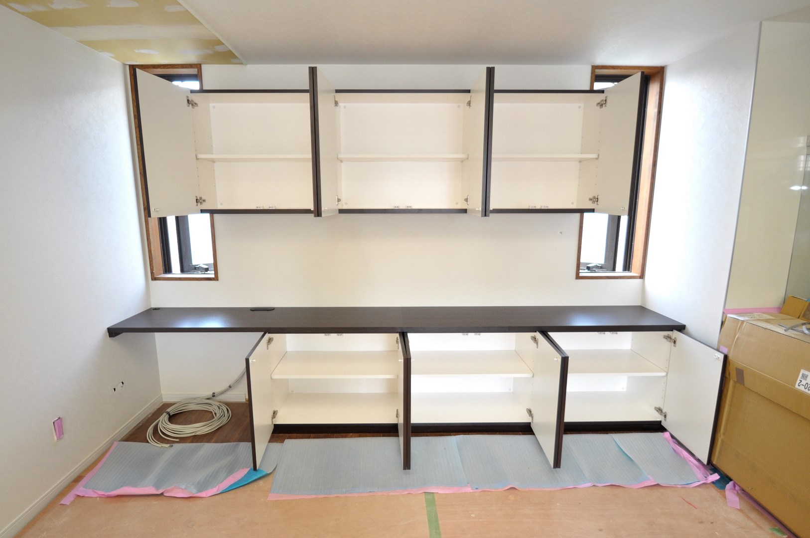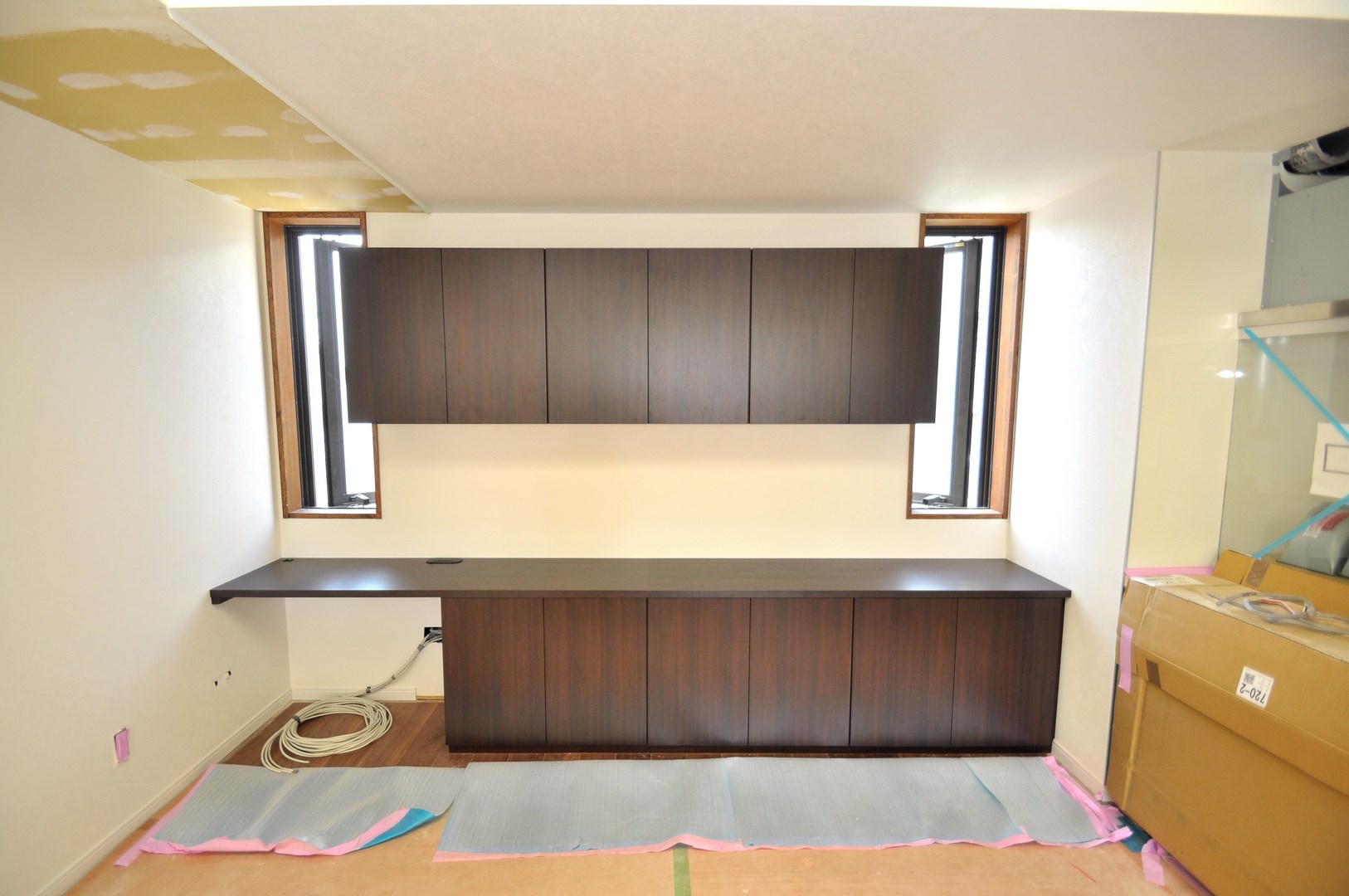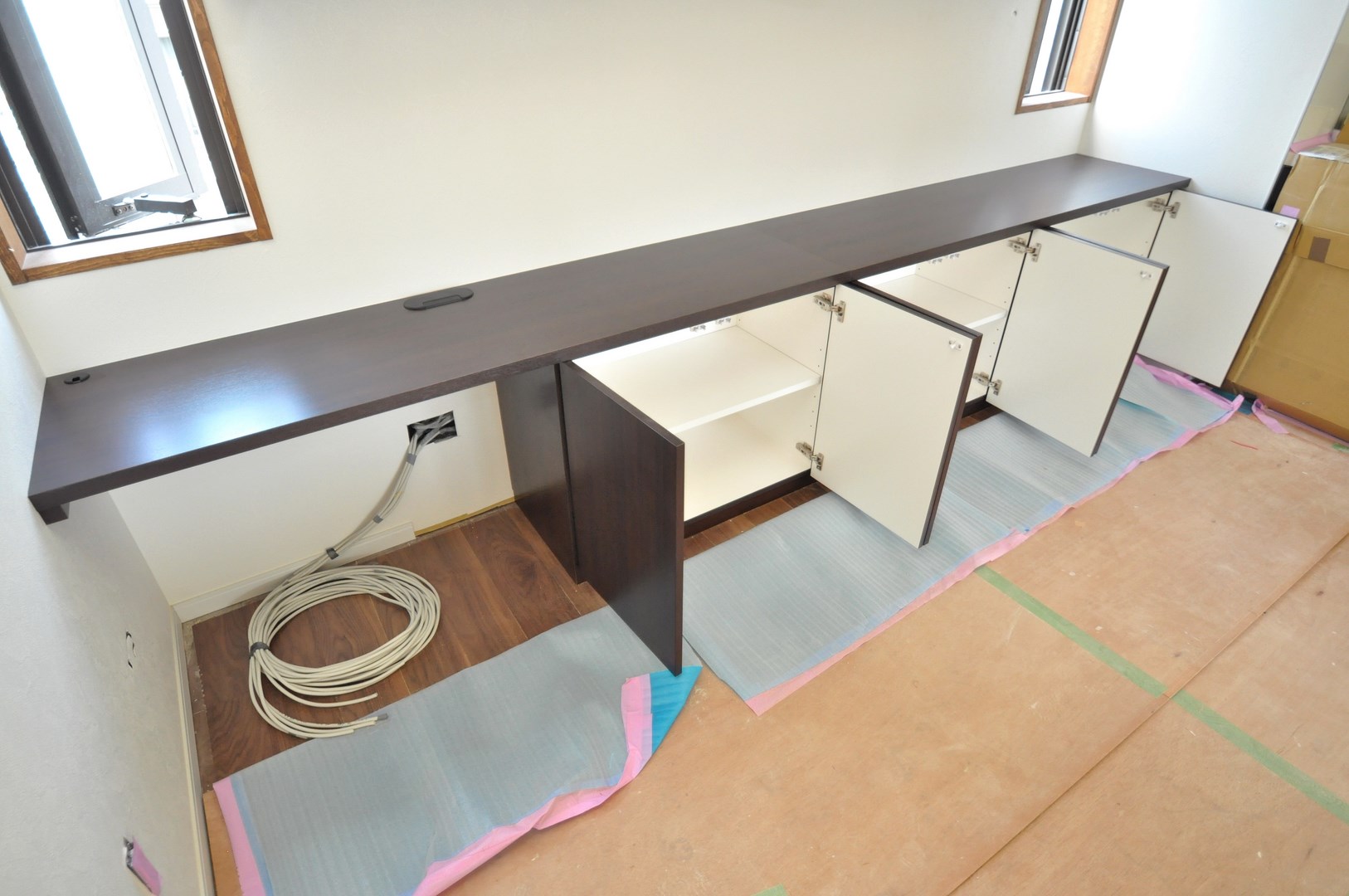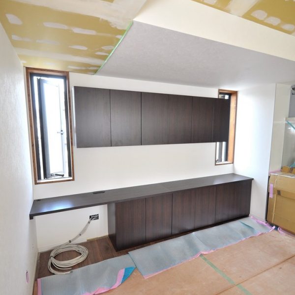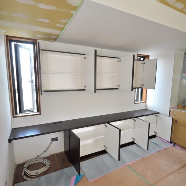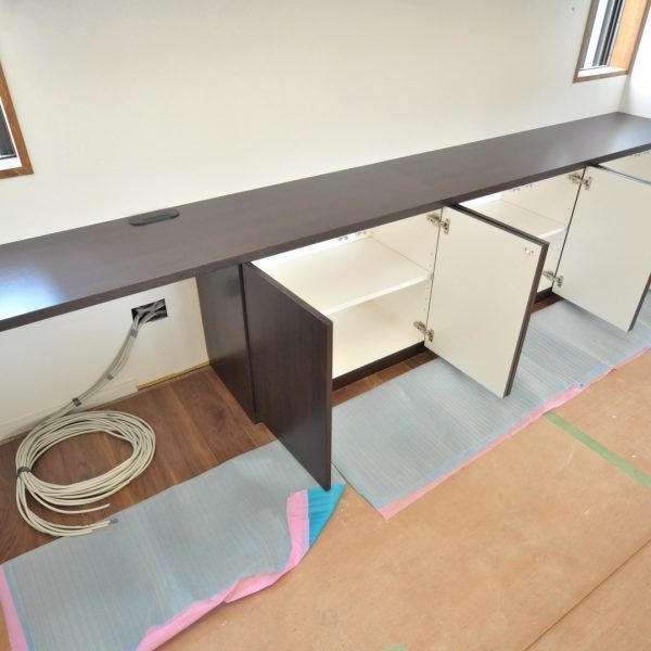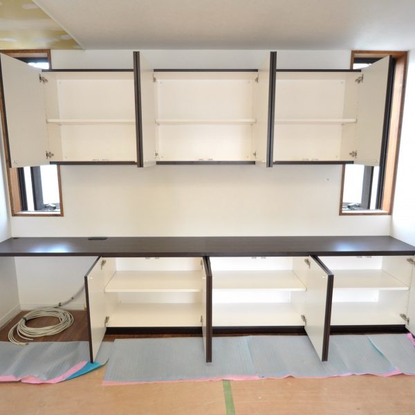 元請の㈱工房様より、造作デスク収納(リビング壁面収納)をオーダー頂きました。