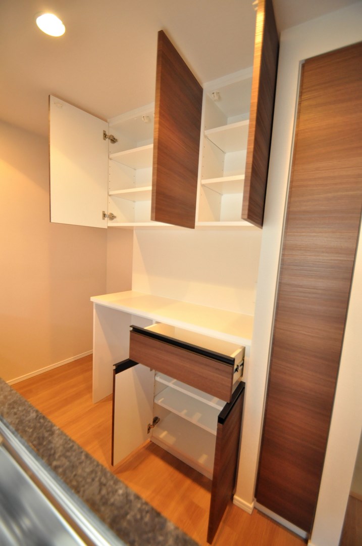 キッチン内におけるカップボード製作 造作キッチン壁面収納 オーダー家具 製作事例