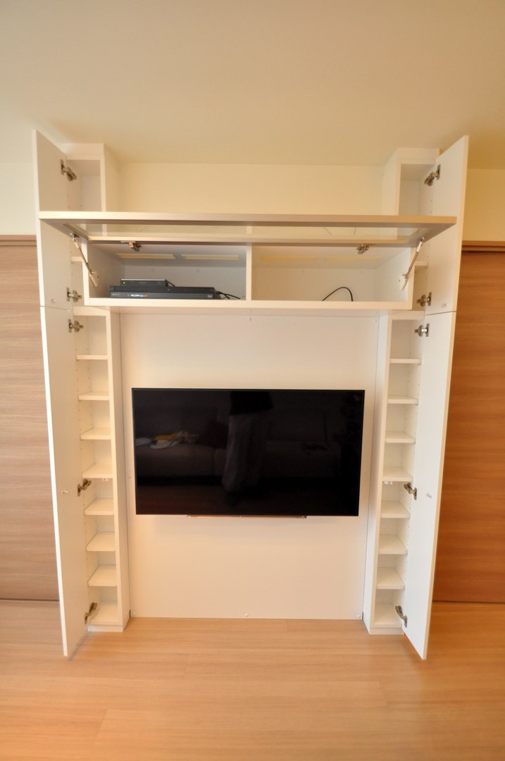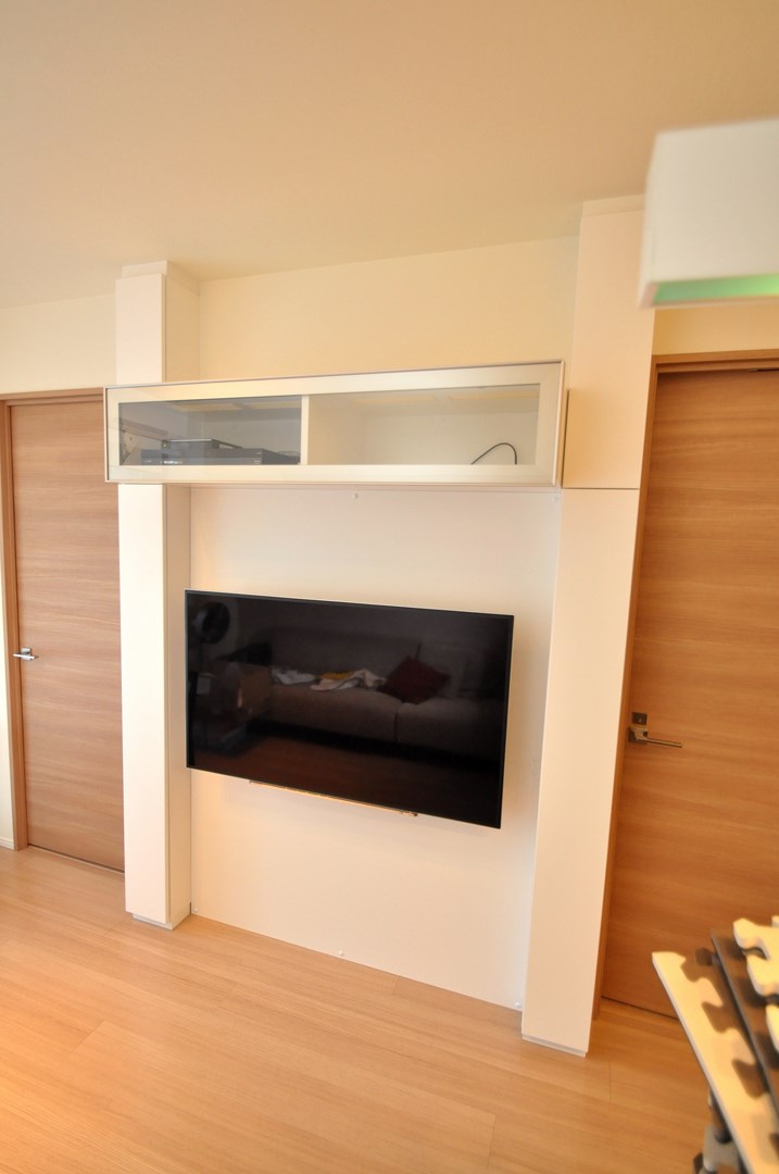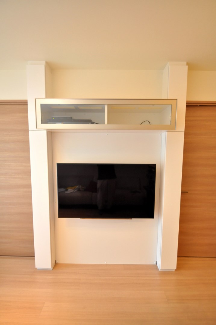 配線の露出がございませんので、テレビが浮いているような意匠を楽しんでいただけます。